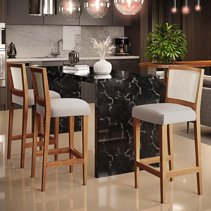 Um clássico que nunca sai de moda! Banquetas Alta Para Cozinha Sala de Jantar Fixa Telado Branco Zion L02 Linho Cru - Lyam Decor, possui um estilo rustico que faltava para deixar sua casa ainda mais clássica. Seu encosto com o detalhe de tela sintética na cor branco trazem ainda mais estilo e destaque para sua decoração, junto com assento estofado que proporciona horas de conforto. A estrutura e o apoio para os pés, são responsáveis por garantir maior segurança à mesma. Pode ser acomodada em cozinha americana, ambientes integrados, espaços gourmets, bancadas ou em seu home bar, independente do lugar, ela desperta logo de cara o bom gosto e elegância, deixando tudo mais despojado, perfeita para criar um ambiente harmonioso e agradável para receber a família e amigos, sempre com muita receptividade! Características: Estrutura em madeira de reflorestamento de eucalipto vermelho tratado. Revestimento em Linho Cru de alta qualidade. Assento com espuma D-23. Encosto de madeira com tela sintética. Peso suportado: Até 130 kg. Apoio para os pés. Dimensões do produto (L x A x P) 41,5 x 103 x 50 cm Altura do chão ao assento: 75 cm Altura do encosto: 31 cm Largura do encosto: 41,5 cm Profundidade do encosto: 3,5 cm Altura do assento: 10,5 cm Largura do assento: 42,5 cm Profundidade do assento: 38,5 cm Altura do apoio para os pés: 5 cm - Por se tratar de estofado as medidas podem ter uma pequena variação de até 3 cm. - A tonalidade do produto real poderá ter ligeira variação devido o lote de tecidos. Observações importantes: - Produto para uso residencial em ambiente interno, não devendo ficar exposto diretamente ao sol, calor e umidade excessivos. - Pode haver alguma diferença de tonalidade entre a imagem e o produto real, por conta do tratamento de imagens e a calibração de cores do seu monitor. - As imagens são meramente ilustrativas, não acompanham objetos de decoração e eletrônicos. - Ao receber a mercadoria, o cliente deve verificar as condições da embalagem, caso haja alguma avaria não assine o comprovante de recebimento. - Montagem, desmontagem e outras instalações serão de responsabilidade do cliente. Não nos responsabilizamos, no ato da entrega, por subir escadas/elevadores ou pelo transporte por guincho em apartamentos. Eventuais despesas são de responsabilidade do comprador. - Confira as dimensões do produto e certifique-se de que passará normalmente por supostos elevadores, portas, escadas e/ou corredores de sua residência.