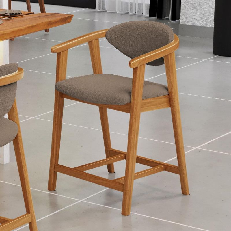 Crie um ambiente sofisticado e acolhedor com a Banqueta Baixa Cecília, da Lyam Decor. Com design moderno essa banqueta é uma peça muito versátil, pois você pode aproveitá-la em diversos ambientes, desde cozinha, sala de jantar, bancada até a área gourmet ou bar e, assim, agregar o máximo de beleza e conforto. Afinal, essa banqueta de madeira se destaca pela sua estrutura robusta que resistência e durabilidade. Já o assento estofado oferece o máximo conforto, enquanto o encosto proporciona suporte ergonômico sem igual. Combinando elegância e praticidade, essa banqueta baixa com encosto é perfeita para quem deseja um toque de requinte em qualquer ambiente. Adicione um charme especial ao seu lar com essa peça indispensável. Adicione ao seu carrinho e desfrute momentos de alegria com a Banqueta Cecília! Dimensões da Banqueta (L x A x P) 51 x 90 x 47 cm Medidas Internas: Altura do chão ao assento: 60 cm Assento livre (L x A x P): 44 x 4,5 x 46,5 cm Encosto livre (L x A): 41 x 22 cm Altura total do encosto: 33 cm Altura interna do braço: 18 cm Altura do chão ao início do braço: 76 cm Altura do chão ao apoio de pés: 17 cm Largura interna do apoio de pés: 27 cm Altura do apoio de pés: 4,5 cm Características: Estrutura em madeira de reflorestamento de eucalipto vermelho tratado. Revestimento em tecido Bouclê de alta qualidade na cor Bege. Assento e encosto fixos tapeçados com espuma D-28. Encosto com design curvo para maior conforto e ergonomia. Pés em madeira maciça envernizada na cor Nozes. Peso suportado: Até 120 kg. - Nunca sentar nos braços ou encosto do produto. - Por se tratar de estofado as medidas podem ter uma pequena variação de até 3 cm. - A tonalidade do produto real poderá ter ligeira variação devido o lote de tecidos. - Indicado para uso residencial, sua limpeza deve ser feita com pano levemente umedecido em água limpa, sem esfregar, não utilizar produtos abrasivos, desengordurantes, álcool ou solvente. Observações importantes: - Produto para uso residencial em ambiente interno, não devendo ficar exposto diretamente ao sol, calor e umidade excessivos. - Pode haver alguma diferença de tonalidade entre a imagem e o produto real, por conta do tratamento de imagens e a calibração de cores do seu monitor. - As imagens são meramente ilustrativas, não acompanham objetos de decoração e eletrônicos. - Ao receber a mercadoria, o cliente deve verificar as condições da embalagem, caso haja alguma avaria não assine o comprovante de recebimento e entre em contato com nossa loja para orientações. - Montagem, desmontagem e outras instalações serão de responsabilidade do cliente. Não nos responsabilizamos, no ato da entrega, por subir escadas/elevadores ou pelo transporte por guincho em apartamentos. Eventuais despesas são de responsabilidade do comprador. - Confira as dimensões do produto e certifique-se de que passará normalmente por supostos elevadores, portas, escadas e/ou corredores de sua residência. - Para mais informações, acesse nossa Central de Atendimento.
