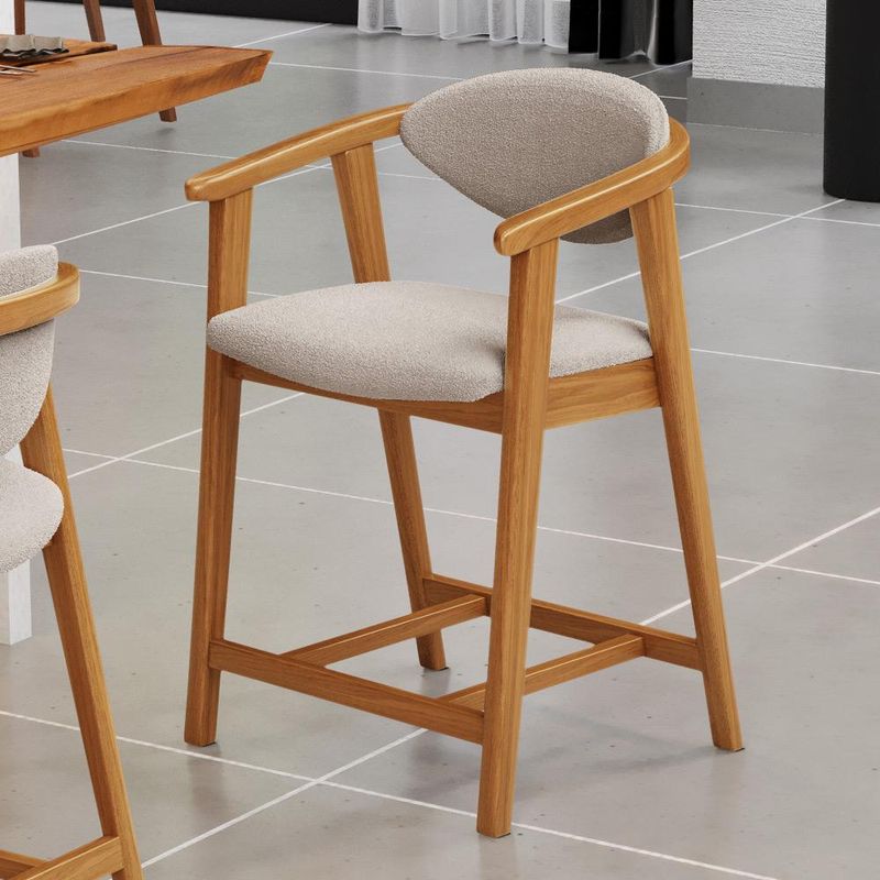 Crie um ambiente sofisticado e acolhedor com a Banqueta Baixa Cecília, da Lyam Decor. Com design moderno essa banqueta é uma peça muito versátil, pois você pode aproveitá-la em diversos ambientes, desde cozinha, sala de jantar, bancada até a área gourmet ou bar e, assim, agregar o máximo de beleza e conforto. Afinal, essa banqueta de madeira se destaca pela sua estrutura robusta que resistência e durabilidade. Já o assento estofado oferece o máximo conforto, enquanto o encosto proporciona suporte ergonômico sem igual. Combinando elegância e praticidade, essa banqueta baixa com encosto é perfeita para quem deseja um toque de requinte em qualquer ambiente. Adicione um charme especial ao seu lar com essa peça indispensável. Adicione ao seu carrinho e desfrute momentos de alegria com a Banqueta Cecília! Dimensões da Banqueta (L x A x P) 51 x 90 x 47 cm Medidas Internas: Altura do chão ao assento: 60 cm Assento livre (L x A x P): 44 x 4,5 x 46,5 cm Encosto livre (L x A): 41 x 22 cm Altura total do encosto: 33 cm Altura interna do braço: 18 cm Altura do chão ao início do braço: 76 cm Altura do chão ao apoio de pés: 17 cm Largura interna do apoio de pés: 27 cm Altura do apoio de pés: 4,5 cm Características: Estrutura em madeira de reflorestamento de eucalipto vermelho tratado. Revestimento em tecido Bouclê de alta qualidade na cor Creme. Assento e encosto fixos tapeçados com espuma D-28. Encosto com design curvo para maior conforto e ergonomia. Pés em madeira maciça envernizada na cor Nozes. Peso suportado: Até 120 kg. - Nunca sentar nos braços ou encosto do produto. - Por se tratar de estofado as medidas podem ter uma pequena variação de até 3 cm. - A tonalidade do produto real poderá ter ligeira variação devido o lote de tecidos. - Indicado para uso residencial, sua limpeza deve ser feita com pano levemente umedecido em água limpa, sem esfregar, não utilizar produtos abrasivos, desengordurantes, álcool ou solvente. Observações importantes: - Produto para uso residencial em ambiente interno, não devendo ficar exposto diretamente ao sol, calor e umidade excessivos. - Pode haver alguma diferença de tonalidade entre a imagem e o produto real, por conta do tratamento de imagens e a calibração de cores do seu monitor. - As imagens são meramente ilustrativas, não acompanham objetos de decoração e eletrônicos. - Ao receber a mercadoria, o cliente deve verificar as condições da embalagem, caso haja alguma avaria não assine o comprovante de recebimento e entre em contato com nossa loja para orientações. - Montagem, desmontagem e outras instalações serão de responsabilidade do cliente. Não nos responsabilizamos, no ato da entrega, por subir escadas/elevadores ou pelo transporte por guincho em apartamentos. Eventuais despesas são de responsabilidade do comprador. - Confira as dimensões do produto e certifique-se de que passará normalmente por supostos elevadores, portas, escadas e/ou corredores de sua residência. - Para mais informações, acesse nossa Central de Atendimento.