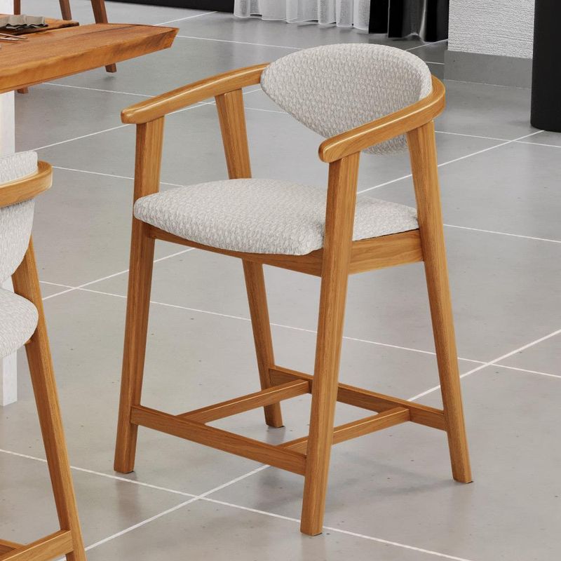Crie um ambiente sofisticado e acolhedor com a Banqueta Baixa Cecília, da Lyam Decor. Com design moderno essa banqueta é uma peça muito versátil, pois você pode aproveitá-la em diversos ambientes, desde cozinha, sala de jantar, bancada até a área gourmet ou bar e, assim, agregar o máximo de beleza e conforto. Afinal, essa banqueta de madeira se destaca pela sua estrutura robusta que resistência e durabilidade. Já o assento estofado oferece o máximo conforto, enquanto o encosto proporciona suporte ergonômico sem igual. Combinando elegância e praticidade, essa banqueta baixa com encosto é perfeita para quem deseja um toque de requinte em qualquer ambiente. Adicione um charme especial ao seu lar com essa peça indispensável. Adicione ao seu carrinho e desfrute momentos de alegria com a Banqueta Cecília! Dimensões da Banqueta (L x A x P) 51 x 90 x 47 cm Medidas Internas: Altura do chão ao assento: 60 cm Assento livre (L x A x P): 44 x 4,5 x 46,5 cm Encosto livre (L x A): 41 x 22 cm Altura total do encosto: 33 cm Altura interna do braço: 18 cm Altura do chão ao início do braço: 76 cm Altura do chão ao apoio de pés: 17 cm Largura interna do apoio de pés: 27 cm Altura do apoio de pés: 4,5 cm Características: Estrutura em madeira de reflorestamento de eucalipto vermelho tratado. Revestimento em tecido Bouclê de alta qualidade na cor Cru. Assento e encosto fixos tapeçados com espuma D-28. Encosto com design curvo para maior conforto e ergonomia. Pés em madeira maciça envernizada na cor Nozes. Peso suportado: Até 120 kg. - Nunca sentar nos braços ou encosto do produto. - Por se tratar de estofado as medidas podem ter uma pequena variação de até 3 cm. - A tonalidade do produto real poderá ter ligeira variação devido o lote de tecidos. - Indicado para uso residencial, sua limpeza deve ser feita com pano levemente umedecido em água limpa, sem esfregar, não utilizar produtos abrasivos, desengordurantes, álcool ou solvente. Observações importantes: - Produto para uso residencial em ambiente interno, não devendo ficar exposto diretamente ao sol, calor e umidade excessivos. - Pode haver alguma diferença de tonalidade entre a imagem e o produto real, por conta do tratamento de imagens e a calibração de cores do seu monitor. - As imagens são meramente ilustrativas, não acompanham objetos de decoração e eletrônicos. - Ao receber a mercadoria, o cliente deve verificar as condições da embalagem, caso haja alguma avaria não assine o comprovante de recebimento e entre em contato com nossa loja para orientações. - Montagem, desmontagem e outras instalações serão de responsabilidade do cliente. Não nos responsabilizamos, no ato da entrega, por subir escadas/elevadores ou pelo transporte por guincho em apartamentos. Eventuais despesas são de responsabilidade do comprador. - Confira as dimensões do produto e certifique-se de que passará normalmente por supostos elevadores, portas, escadas e/ou corredores de sua residência. - Para mais informações, acesse nossa Central de Atendimento.