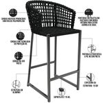 A Banqueta Porto é uma peça ideal para decorar e dispor de conforto e comodidade nos momentos de lazer. O destaque aqui vai para o design artesanal com materiais de altíssima qualidade, como a corda náutica que é um material extremamente elegante na fabricação de móveis para área externa, pela sua beleza, resistência e durabilidade, ou seja, sem erro para criar desde uma decoração simples até uma mais ousada e cheia de personalizações. Pode ser usada perto da piscina, no jardim, sala de estar, varanda e onde mais sua criatividade desejar! Garanta já a sua! Dimensões do Produto (L x A x P) 49 x 105 x 45 cm Medidas Internas: Altura do chão ao assento: 75 cm Altura do chão ao braço: 96 cm Largura do assento:45 cm Características: Estrutura em alumínio. Acabamento em pintura eletrostática a pó na cor Preto, de alta resistência, sendo indicado também para áreas litorâneas. Cordas náuticas produzida com fios de polipropileno na cor Preto. Ponteiras em polietileno injetadas com borda interna para evitar acúmulo de água. Espessura da estrutura: 1,6 mm Suporta até 115 kg. - A tonalidade do produto real poderá ter ligeira variação devido o lote de tecidos. - A limpeza deve ser feita com pano levemente umedecido em água limpa, sem esfregar, não utilizar produtos abrasivos, desengordurantes, álcool ou solvente. - O produto tem aditivo anti enxofre que o torna mais resistente, mas não é recomendada a exposição por tempo indefinido ao sol, chuva, sereno e maresia. - A exposição prolongada ao sol ou maresia, pode causar desbotamento precoce da corda náutica. Observações importantes: - Produto para uso em ambiente interno e externo, não devendo ficar exposto diretamente ao sol, calor e umidade excessivos. - Pode haver alguma diferença de tonalidade entre a imagem e o produto real, por conta do tratamento de imagens e a calibração de cores do seu monitor. - As imagens são meramente ilustrativas, não acompanham objetos de decoração e eletrônicos. - Ao receber a mercadoria, o cliente deve verificar as condições da embalagem, caso haja alguma avaria não assine o comprovante de recebimento. - Montagem, desmontagem e outras instalações serão de responsabilidade do cliente. Não nos responsabilizamos, no ato da entrega, por subir escadas/elevadores ou pelo transporte por guincho em apartamentos. Eventuais despesas são de responsabilidade do comprador. - Confira as dimensões do produto e certifique-se de que passará normalmente por supostos elevadores, portas, escadas e/ou corredores de sua residência.
