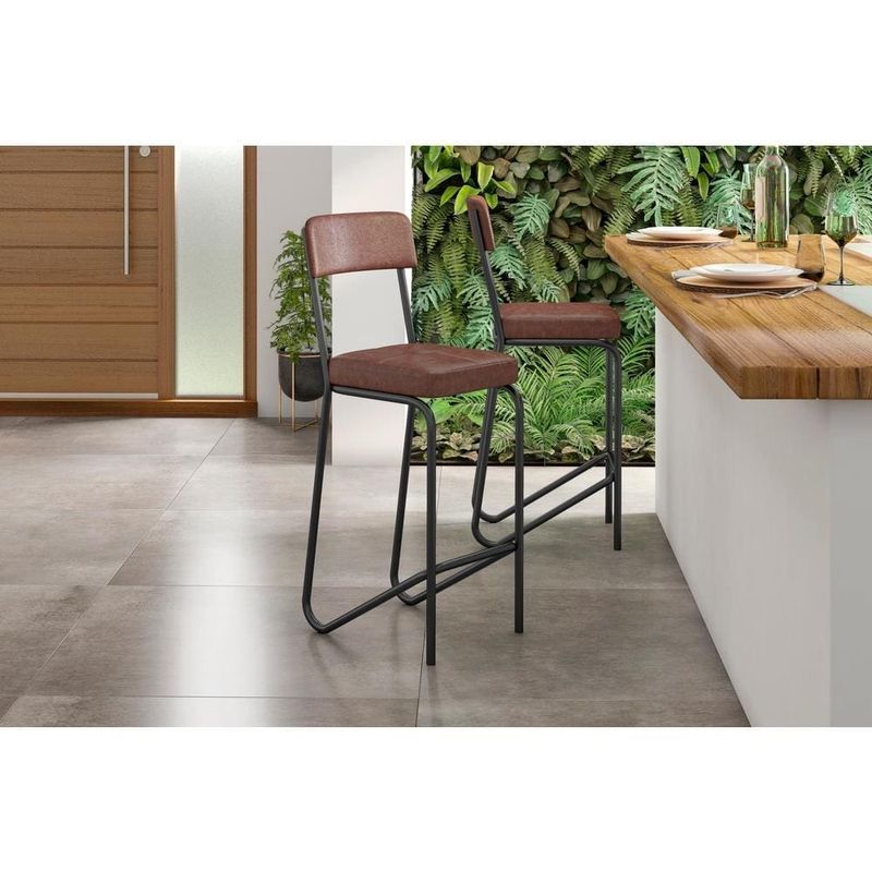 Decore sua cozinha ou área gourmet com sofisticação, bom gosto e conforto com a Banqueta Fabone Nagoia. Seu design moderno combina estrutura em aço carbono com acabamento em pintura fosca, proporcionando um visual elegante e duradouro.O assento é estofado com espuma D20, garantindo maciez e excelente apoio para o uso prolongado. Revestido em Corano sintético na cor marrom, o acabamento facilita a limpeza e confere um toque sofisticado ao ambiente. O encosto também conta com espuma para maior conforto ergonômico.Com sapatas plásticas nos pés, a banqueta protege o piso contra riscos e oferece mais estabilidade durante o uso. Ideal para bancadas, ilhas, áreas de convivência e ambientes comerciais. Suporta até 100 kg com segurança e leveza no manuseio.Estrutura em aço carbono com acabamento preto foscoEstofada com espuma D20 para maior confortoRevestimento em Corano marrom, fácil de limparCom sapatas plásticas que protegem o piso