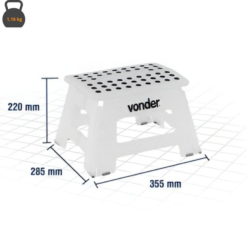 Banqueta Plástica Dobrável Com Alça Vonder Altura 220mm Branco