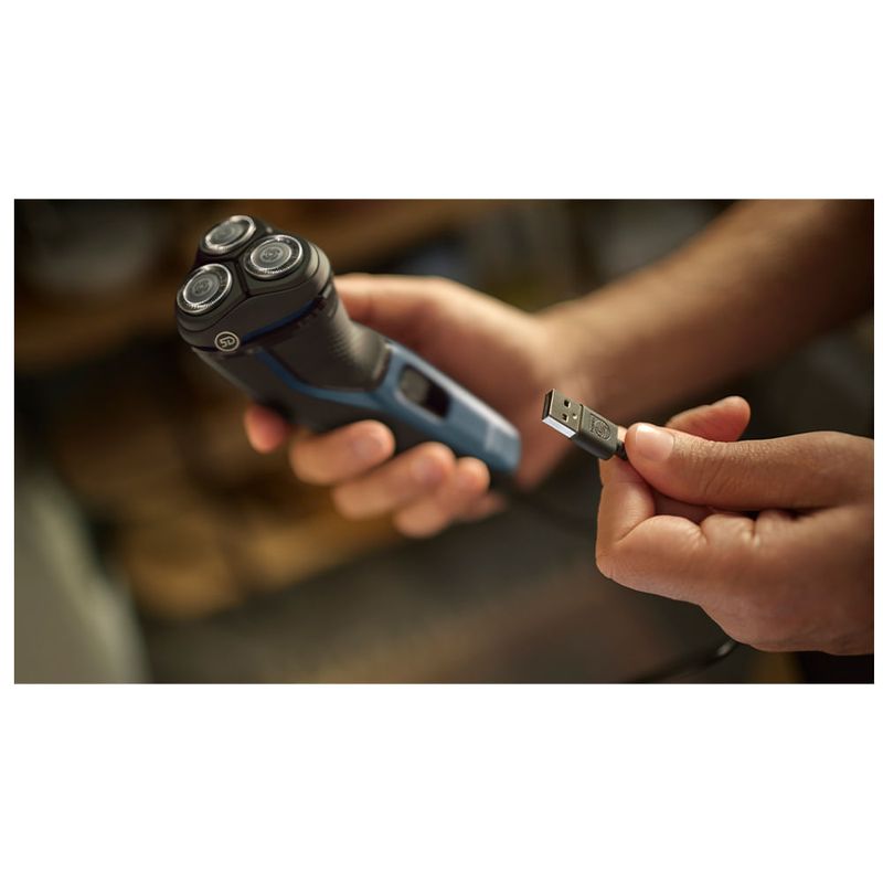 O barbeador elétrico de uso seco e molhado Philips série 3000 proporciona um barbear confortável e limpo, mesmo em peles sensíveis. As cabeças 5D Pivot e Flex, as 27 lâminas PowerCut autoafiáveis para uso seco ou molhado garantem sempre resultados excelentes e confiáveis. Possui 2 anos de garantia e 90 dias para testar. Cabeças de corte 5D Pivot & Flex Ao se mover e girar em cinco direções, a cabeça acompanha todas as curvas do seu rosto, cortando os pelos bem rente à pele e proporcionando um barbear limpo e confortável, mesmo em peles sensíveis. Lâminas PowerCut As 27 lâminas autoafiáveis cortam consistentemente os pelos bem rente à pele, proporcionando acabamento suave e uniforme, sempre. As lâminas autoafiáveis permanecem novas por 2 anos. Barbear a seco e com a pele molhada Escolha entre um prático barbear a seco ou um refrescante barbear úmido com gel ou espuma, até mesmo debaixo do chuveiro. 60 minutos de barbear sem fio Em apenas uma hora, a bateria durável de íon de lítio fica totalmente carregada para você se barbear por 20 vezes. Sistema de corte anticorrosão As lâminas do barbeador são feitas de aço cirúrgico hipoalergênico para resistir à corrosão, evitar impurezas e proteger sua pele. Aparador retrátil Refine e defina o bigode e as costeletas com o aparador retrátil e complete seu visual com facilidade. Abertura com um único toque Para abrir a cabeça do barbeador e lavá-la em água corrente, basta tocar em um botão. Empunhadura de borracha Nunca perca a sua pega. O cabo ergonômico em borracha proporciona conforto e segurança, mesmo quando molhado. Indicador de nível da bateria Não seja pego de surpresa por uma bateria vazia. O indicador da bateria permite que você saiba se a bateria está fraca, vazia ou sendo carregada. Carregamento USB-A Na Philips, impulsionamos a sustentabilidade em todos os aspectos da criação de produtos. Nossa ambição é diminuir o desperdício e reduzir o número de adaptadores USB que colocamos no mercado." Características Uso: Uso Molhado Tipo: Barbeadores Velocidades: 01 Quantidade de Lâmina/Pente: Tampa de proteção Aparador retrátil incluído Lâminas Hipoalergênicas Remove os Pelos pela Raiz Portátil Lavável Indicador de Carga Sistema Giratório Recarregável Uso/Operação: sem Fio Especificações Técnicas Modelo: S3144/00 Voltagem: Bivolt Cor: Azul profundo EAN: 8720689024594 Garantia: 24 meses Dimensões e Peso Itens Inclusos 01 Barbeador 01 Tampa de proteção Aparador retrátil incluído
