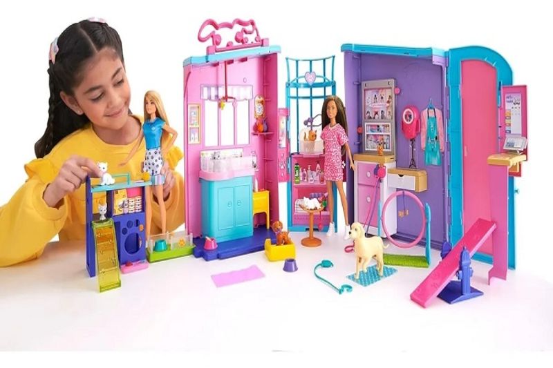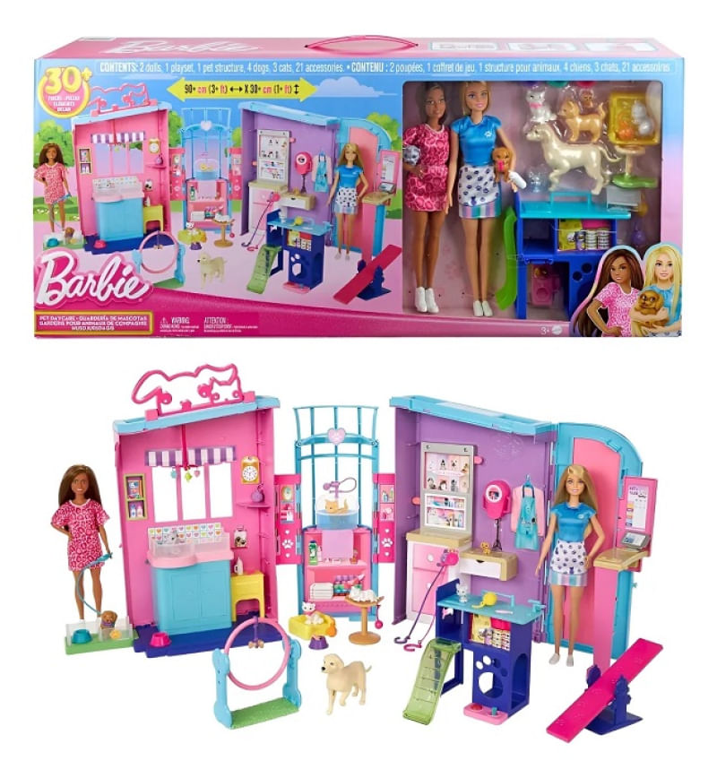 Barbie Playset Maleta PetShop Creche De Animais De Estimação 90 Cm Com 2 Bonecas - Mattel O Playset Barbie creche de Animais de Estimação é perfeito para crianças que adoram cuidar de animais e criar histórias divertidas. Ele vem com duas bonecas Barbie, quatro cães, quatro gatos e diversos acessórios, como caminhas, comedouros, brinquedos e roupinhas, oferecendo tudo o que é necessário para uma brincadeira completa.Com quatro áreas desdobráveis — berçário, estação de cuidados, espaço de brincadeira e balcão de check-in — cada cenário se torna mais realista e divertido. As bonecas vêm prontas para assumir o papel de babá, estimulando a imaginação e a criatividade enquanto a criança cria aventuras com seus pets.Além de divertido, o playset ajuda a desenvolver a coordenação motora, a empatia e o senso de responsabilidade. Feito em plástico seguro e recomendado para crianças a partir de 3 anos, ele transforma a hora da brincadeira em momentos de aprendizado, carinho e muita diversão.|Vem com duas bonecas, Quatro áreas desdobráveis ,Berçário , Estação de cuidados, Espaço de exercício/brincadeira e Balcão de check-in Idade acima de 3 anos Contem 1 playset 2 bonecas e acessórios Tamanho da embalagem 73 x 32 x 15 cm Fabricante Mattel