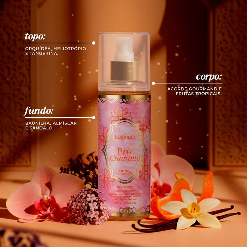 Barbour s Beauty Pink Chantilly é um body splash gourmand e envolvente criado para perfumar suavemente a pele com uma fragrancia adocicada, cremosa e delicadamente feminina. Sua composicao inspira sensacoes de conforto e prazer, combinando frutas vermelhas suculentas com notas lactonicas e baunilha aveludada que criam uma aura doce sem ser pesada, ideal para uso diario e reaplicacoes frequentes. Desenvolvido para acompanhar rotinas descontraidas, momentos de lazer ou dias quentes, este body splash entrega frescor imediato aliado a um perfume delicado e viciante que permanece perceptivel por horas. Pink Chantilly transforma o cuidado corporal em uma experiencia sensorial prazerosa, deixando a pele suavemente aromatizada, luminosa e com toque doce irresistivel. Caracteristicas: Marca: Barbour s Beauty Linha: Pink Chantilly Categoria: Body Splash Versao: Pink Chantilly 200ml Beneficios: perfumacao leve, aroma gourmand cremoso, frescor imediato e facil reaplicacao Ingredientes Principais: essencias frutadas, acordes lactonicos e baunilha Modo de Aplicacao: Borrife diretamente sobre a pele limpa e seca, mantendo distancia aproximada de 15cm. Reaplique sempre que desejar intensificar a fragrancia ou renovar a sensacao de frescor ao longo do dia. Especificacoes do Produto: Familia Olfativa: Gourmand, Frutado Genero: nao aplicavel Concentracao: body splash Ocasião: Dia a Dia, Lazer, Clima Quente, Verao, Encontros Casuais Notas de Topo: morango, framboesa Notas de Coracao: chantilly, leite condensado Notas de Fundo: baunilha, almíscar Beneficios do Produto: Eficacia: perfuma suavemente a pele com aroma doce e cremoso bem definido. Durabilidade: fragrancia moderada com necessidade de reaplicacao ao longo do dia. Versatilidade: ideal para uso diario, lazer e momentos descontraidos. Design ou Praticidade: frasco de 200ml perfeito para reaplicacoes frequentes e uso continuo. Barbour s Beauty Pink Chantilly é ideal para quem busca uma fragrancia corporal gourmand delicada e feminina para acompanhar a rotina, proporcionando sensacao de conforto, frescor e perfume suave em todas as ocasioes.