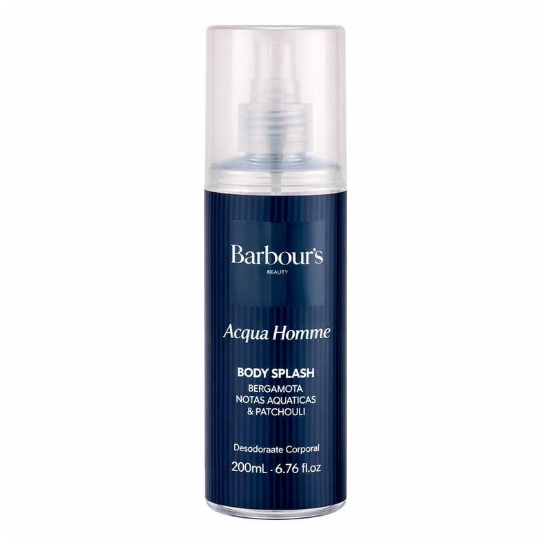 Barbour?s Beauty Acqua Homme Desodorante Colônia é uma fragrância masculina refrescante e moderna desenvolvida para Barbours Beauty Acqua Homme Desodorante Colonia é uma fragrância masculina refrescante e moderna desenvolvida para proporcionar sensação de frescor ao longo do dia. Sua composição combina acordes aquáticos e aromáticos com um fundo amadeirado suave, criando um aroma leve, elegante e versátil para o uso diário. A abertura traz notas frescas que despertam os sentidos e proporcionam sensação imediata de limpeza e energia. No coração, nuances aromáticas acrescentam masculinidade e equilíbrio à fragrância. O fundo amadeirado completa a composição com elegância e conforto, criando um perfume agradável que acompanha o homem moderno em diferentes momentos do dia. Caracteristicas: Marca: Barbours Beauty Linha: Acqua Homme Categoria: Desodorante Colonia Versao: Body Splash Beneficios: Fragrância masculina fresca com perfil aromático aquático ideal para o uso diário. Modo de Aplicacao: Borrife o produto diretamente sobre a pele limpa e seca, preferencialmente após o banho. Aplique em áreas como pescoço, pulsos e peito para melhor projeção da fragrância. Especificações do Produto: Familia Olfativa: Aromatica Aquatica Concentracao: Desodorante Colonia Genero: Masculino Ocasião: Dia a Dia, Trabalho, Lazer, Primavera, Verao, Clima Quente Volume: 200ml Beneficios do Produto: Eficacia: Proporciona fragrância refrescante que transmite sensação de limpeza e bem-estar. Durabilidade: Fórmula leve ideal para reaplicação ao longo do dia. Versatilidade: Perfeito para uso diário após o banho ou durante o dia para renovar a fragrância. Design ou Praticidade: Embalagem spray prática de 200ml que facilita a aplicação e transporte. Barbours Beauty Acqua Homme Desodorante Colonia é ideal para homens que buscam uma fragrância leve e refrescante para o dia a dia. Sua assinatura olfativa aquática e aromática cria um aroma limpo e elegante que transmite frescor e conforto em qualquer ocasião.