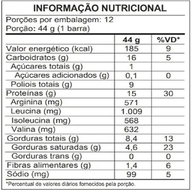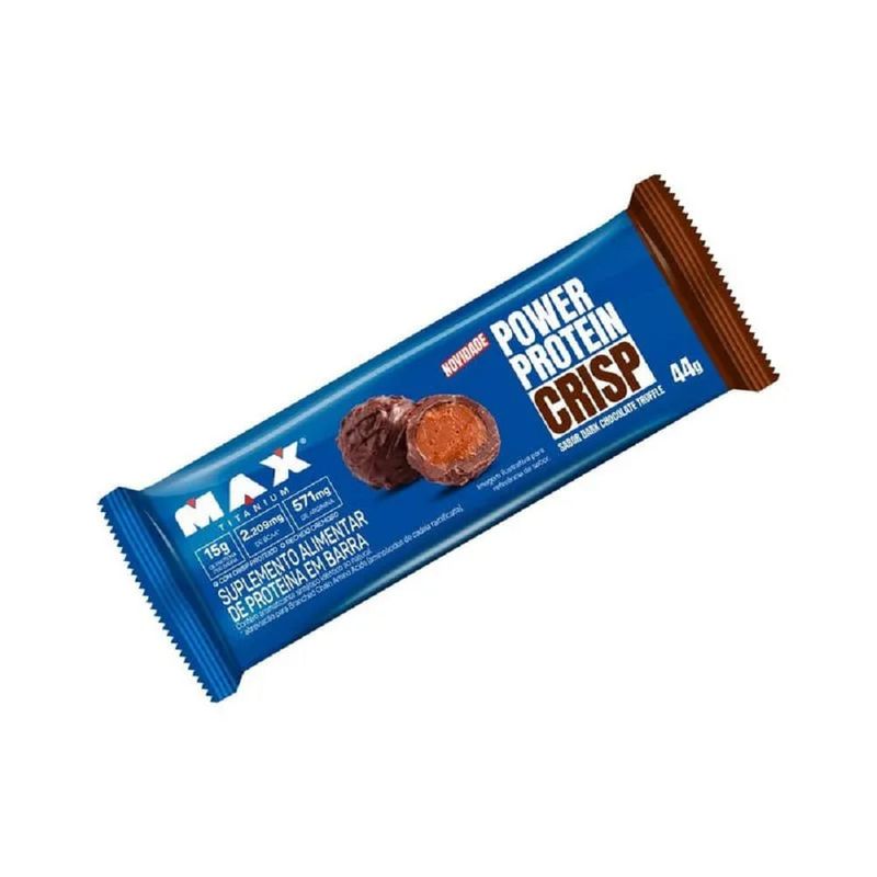 Barra de Proteína Power Protein Crisp Max Titanium Dark Chocolate Truffle 44g Para que serve a Barra de Proteína Power Protein Crisp Max Titanium Dark Chocolate Truffle 44g? A Barra de Proteína Power Protein Crisp Max Titanium Dark Chocolate Truffle 44g é a escolha perfeita para quem busca um lanche saudável e nutritivo, sem abrir mão do sabor. Com uma combinação deliciosa de chocolate amargo e crocantes pedaços de proteína, ela oferece 20g de proteína por porção, ideal para quem pratica atividades físicas e deseja recuperar a energia de forma prática e saborosa. Perfeita para ser consumida no pós-treino, entre as refeições ou como um lanche rápido no dia a dia. Como usar a Barra de Proteína Power Protein Crisp Max Titanium Dark Chocolate Truffle 44g? Consuma a Barra de Proteína Power Protein Crisp a qualquer hora do dia, principalmente após atividades físicas para promover a recuperação muscular. Ela é prática para levar na bolsa, mochilas ou para ter sempre à mão, garantindo energia e saciedade onde você estiver. Composição Blend de proteínas (proteína concentrada do soro do leite (WPC), colágeno hidrolisado, caseína e caseinato de cálcio), cobertura proteica sabor chocolate ao leite, recheio de ganache de chocolate meio amargo, óleo de girassol, cacau alcalino em pó, cookies sabor chocolate, polidextrose, TCM, sal, edulcorante xarope de maltitol, umectante glicerina, emulsificante lecitina de girassol, aromatizantes e conservador sorbato de potássio. CONTÉM GLÚTEN. Advertências Contém glúten. Contém amendoim e derivados de leite. Pode conter traços de soja, ovos e frutos secos. Mantenha em local fresco e seco, longe da luz solar direta. Principais Benefícios 13g Proteína por barra Recheio cremoso Sem proteína de soja Com TCM (triglicerídeos de cadeia média) BCAA Dica Para intensificar o sabor do chocolate, experimente guardar a barra na geladeira por alguns minutos antes de consumir. Isso deixará o chocolate ainda mais firme e delicioso! Informação Nutricional Tabela nutricional Barra Power Crisp Max Titanium - dark choc Porção de 44g (1 barra) Qtde. por porção %VD(*) Valor energético(kcal) 185 9 Carboidratos(g) 16 6 Açúcares totais(g) 1 Açúcares adicionados(g) 0,1 0 Poliois totais(g) 9 Proteínas(g) 15 30 Arginina(mg) 571 Leucina(mg) 1009 Isoleucina(mg) 568 Valina(mg) 632 Gorduras totais(g) 8,4 13 Gorduras saturadas(g) 4,6 23 Gorduras trans(g) 0 0 Fibras alimentares(g) 1,4 6 Sódio(mg) 99 5 * Valores diários de referência com base em uma dieta de 2000Kcal ou 8400Kj. Seus Valores diários podem ser maiores ou menores dependendo de suas necessidades energéticas.