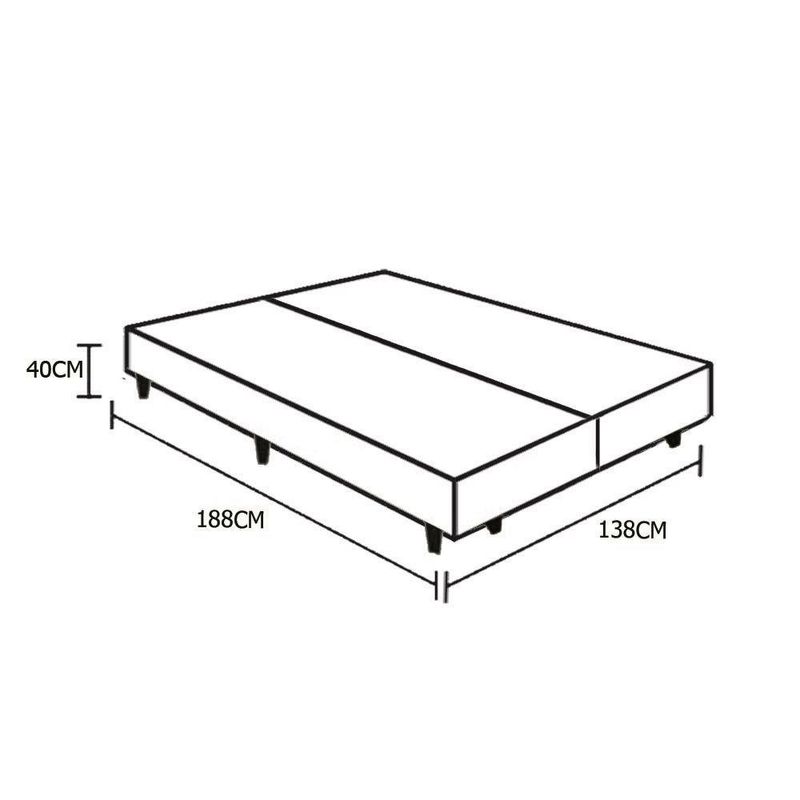 Base Box Casal Bipartido Extremo Reforçado Homequeen Sintético Preto 40x138x188Cama Box Casal Bipartido Extremo Reforçado HomeQueen Sintético Preto 40x138x188Cama Box Bipartida é produzida com os melhores materiais, proporcionando uma alta resistência e durabilidade prolongada.Proporcionando praticidade e conforto, tornando-se uma peça que pode ser combinada com a decoração de seu quarto deixando-o moderno e sofisticado.*Tampo extremamente Reforçado e fundo Reforçado em madeira.***As cores do produto podem variar de acordo com o monitor, a iluminação do ambiente e a sua percepção visual.**Características do Box:- Estrutura Interna: Estrutura em madeira 100% de Reflorestamento- Estrutura Externa: Sintético- Tratamento : Sim- Tratamento : Sim- Saida de Ventilação: Sim- Suporta até (kg): 150 Kg- Necessita : Não- Altura: 28cm- Largura: 138cm- Largura cada box: 69cm- Profundidade: 188cm- Possui Pés: Sim, feitos de madeira e fixos ao box- Altura dos Pés: 12cm- Garantia do Fornecedor: 03 mesesVerifique nossas politicas internas para que não haja nenhuma dúvida no processo de ao finalizar a compra, pois não fazemos a e des do produto e/ou portas e janelas, pela escada ou içamento pelo lado de fora do prédio.**Confira as dimensões do produto e certifique-se de que passará normalmente por supostos elevadores, portas, escadas e/ou corredores de sua residência**