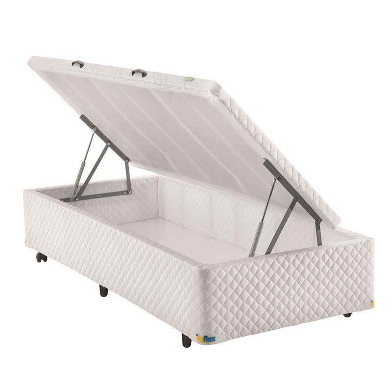 A Base Box para Colchão Solteiro Itaflex Universal com Baú 40,5x88x188 cm – Branco é perfeita para uma boa noite de descanso!Com estrutura em madeira de eucalipto reflorestado e revestimento em tecido 100% poliéster a Base Box Itaflex é durável. Resistente, suporta até 120 kg. Conta com pés fixos e com rodízios que garantem a mobilidade da cama. Além disso, possui Baú com abertura de pistão a gás, ideal para quem precisa economizar espaço, visando o aproveitamento do espaço interno. Assim, você pode utilizar para guardar roupas de cama, travesseiros e o que quiser. Tenha as melhores noites de sono com a Base Box para Colchão Solteiro Itaflex Universal com Baú 40,5x88x188 cm – Branco!