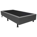 Base Box Solteiro Cinza Sintético 38x88x188Base Simples SolteiroCama Box Base Solteiro ? Simples, resistente e perfeita para o seu colchão! Qualidade e durabilidade em um design versátil.Cama Box Base Simples Solteiro ? Resistência e Conforto para o Seu ColchãoA Cama Box Base Simples Solteiro é a escolha ideal para quem busca suporte firme, durabilidade e um visual moderno para o quarto. Produzida com estrutura reforçada em madeira tratada, oferece estabilidade e resistência para o seu colchão, garantindo noites de sono mais confortáveis e seguras.Com design clean e revestimento Premium, essa base combina facilmente com qualquer tipo de decoração e é compatível com todos os colchões padrão solteiro. Sua altura ideal facilita a circulação de ar, prolongando a vida útil do colchão.Benefícios da Cama Box Base Simples Solteiro:· Estrutura reforçada para máxima durabilidade.· Design moderno e versátil.· Compatível com colchões padrão solteiro.· Fácil de limpar e manter.· Excelente custo-benefício.Avisos Importantes:· Não realizamos a subida do produto por escadas ? entrega no térreo. É responsabilidade do comprador levar até o local desejado.· Colchão, travesseiros e cabeceira não inclusos.· Confira as medidas antes da compra para garantir compatibilidade com seu colchão.Ficha Técnica ? Cama Box Base Simples Solteiro· Modelo: Cama Box Base Simples Solteiro· Medidas: 88 cm (largura) x 188 cm (comprimento)· Altura total: 38 cm (com pés)· Estrutura: Madeira de reflorestamento tratada e reforçada· Revestimento: Tecido Premium· Peso máximo suportado: até 150 kg distribuídos· Cores disponíveis: Cinza· Garantia: 3 meses contra defeitos de fabricação