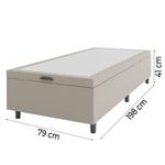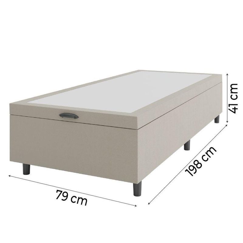 Base Cama Box Baú Solteiro 79x198x41cm Bege Suede Veludo Prince Bege O Box Prince é ideal para o seu quarto! Conta com estrutura em material resistente, tecido suede veludo de toque macio e pés em plástico que não agridem o piso. Perfeito para quem procura praticidade e modernidade.MEDIDAS:A: 41 cm / 35 cm (sem pés)L: 79 cmP: 198 cmMODELO: Base Cama Box Solteiro Bege PrinceMARCA: PrinceCOR: BegeMATERIAL DA ESTRUTURA: MDPTECIDO: Suede veludoPÉS: 6ALTURA DOS PÉS: 6cmMATERIAL DOS PÉS: PlásticoGARANTIA: 3 meses pelo fabricanteITENS INCLUSOS:1 box baú de 0,79mA Esplanada Móveis se responsabiliza pela entrega dos produtos adquiridos até a porta de entrada ou portaria do endereço indicado, se a portaria do condomínio permitir, as entregas são efetuadas no piso térreo e é de responsabilidade do cliente a locomoção da mercadoria até seu apartamento ou casa. Confira as dimensões do produto e certifique-se de que estão adequadas aos elevadores, portas e corredores do local da entrega. Não fazemos a montagem, desmontagem do produto e/ou portas e janelas, transporte pela escada ou içamento pelo lado de fora do prédio. Não está incluso no serviço de entrega o deslocamento até o interior do apartamento, com ou sem elevador, ou deslocamento em locais de difícil acesso como escadarias. MEDIDAS:: A: 41 cm / 35 cm (sem pés) L: 79 cm P: 198 cm | MODELO:: SUEDE BEGE | MARCA:: Prince | COR:: Bege | MATERIAL DA ESTRUTURA:: MDP | TECIDO:: Suede veludo | PÉS:: 6 | ALTURA DOS PÉS:: 6cm | MATERIAL DOS PÉS:: Plástico | GARANTIA:: 3 meses pelo fabricante | ITENS INCLUSOS:: 1 box baú de 0,79m | AVISO:: A Esplanada Móveis se responsabiliza pela entrega dos produtos adquiridos até a porta de entrada ou portaria do endereço indicado, se a portaria do condomínio permitir, as entregas são efetuadas no piso térreo e é de responsabilidade do cliente. Cor: Bege