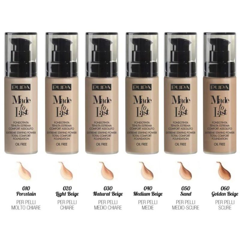 Base Fluida Made to Last Pupa 010 Porcelain 30mlUma base super duradoura e totalmente confortável que nunca te decepciona.Criada para durar no tempo e resistente às intempéries, para um resultado de maquiagem perfeito mesmo com umidade e altas temperaturas*. Sua textura é fresca e fundente, espalhando-se uniformemente na pele. O resultado? Uma pele perfeita o dia todo. Cobertura ajustável de média a alta.6 tons disponíveis.Modo de usar:Agite bem antes de usar. Aplique uma pequena quantidade de produto nas costas da mão e aplique do centro do rosto para as bordas, espalhando cuidadosamente na linha do cabelo.Em seguida, espalhe do queixo até a base do pescoço, para evitar diferenças de cor inestéticas.Para um resultado profissional, aplique o produto com o Pincel para Base da linha Professional Brush, do centro do rosto para os contornos, da testa até o queixo, espalhando no pescoço.