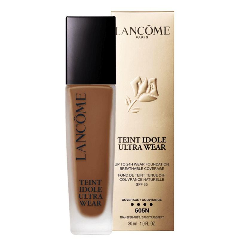 Base Liquida Teint Idôle Ultra Wear Lancôme 505N 30mlBase Liquida Teint Idôle Apresenta uma fórmula de alta performance, com alta cobertura e que dura 24 horas, possui uma formulação inovadora, com uma textura leve, de longa duração e que deixa a pele respirar.Benefícios:Traz 81% sérum de skincare na composição, enriquecido com Ácido Hialurônico e ativos de proteção da cútis.Ação / Resultado:Pele saudável e com cobertura uniforme o dia todo.Dica:Manter o rosto hidratado e fundamental para o resultado final da make, já que uma pele saudável deixa a base com acabamento ideal, melhora sua durabilidade e evita com que ela craquele. Portanto, sempre use seu hidratante preferido antes de começar a se maquiar.Modo de Usar:Qualquer hora do dia coloque uma pequena quantidade da base no dorso da mão e use um pincel próprio, uma esponja ou os dedos para aplicar sobre o rosto de maneira uniforme, sempre em movimentos circulares do centro para a extremidade.Idade recomendada: 30-50 anosA Base Liquida Teint Idôle Ultra Wear Lancôme 505N está disponivel na volumetria 30mlSobre a Marca:Lancôme é uma marca que fabrica linhas exclusivas de maquiagem, perfume e cosméticos de alto glamour, qualidade e sofisticação. Ela foi criada em 1935 pelo francês Armand Petitjean, que se inspirou em um castelo do Vale do Loire, no centro da França, para escolher o seu nome.Especificações:Marca: LancômeProduto: OriginalTextura: LiquidaProposta: Hidratação