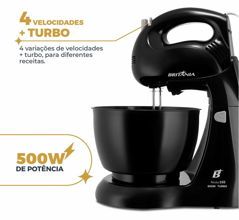 Batedeira Britânia Pérola 550 Turbo Tigela para 4,3L 500W 220V