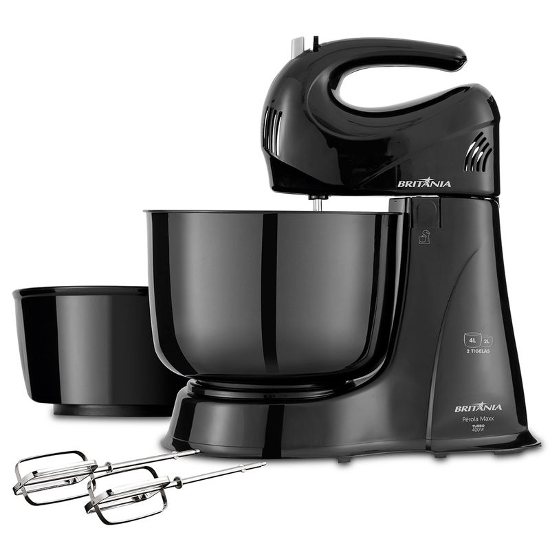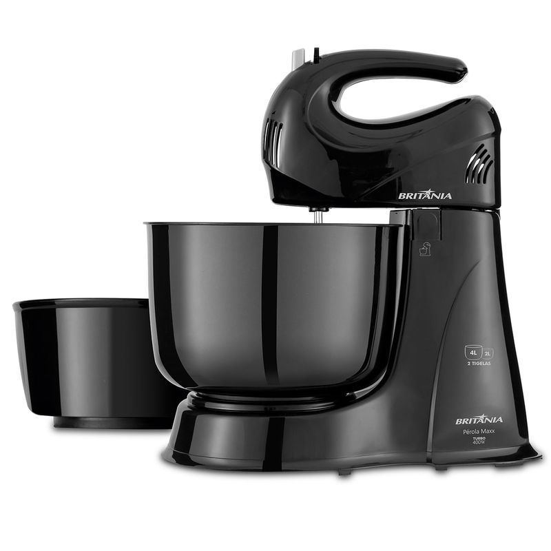 A Batedeira Britânia Pérola Maxx 2 tem 400W de potência e é a melhor opção para você que adora preparar receitas diferentes! Ela acompanha 2 tigelas, sendo uma com capacidade para 4 litros e outra com capacidade para 2 litros. Além disso, a tigela é giratória por sistema de disco, aumentando a qualidade da mistura dos ingredientes. A Batedeira Britânia Pérola Maxx conta com 4 opções de velocidades e botão ejetor dos batedores para retirá-los sem sujar as mãos, além de poder ser usada como portátil, pois o corpo é removível. Inove nas receitas doces e salgadas e prepare tudo com muita facilidade com a Batedeira Pérola Maxx! • 4 velocidades + Turbo • Potência de 400W • 2 tigelas Plástica com capacidade de 4 e 2 litros. Pode ser utilizada no freezer • Unidade motora pode ser usada fora da base (pode ser usada como portátil) • Tigela giratória (movimentação manual) • Botão ejetor dos batedores