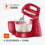 Para o sucesso de suas receitas, nada melhor do que aparelhos que facilitam sua vida na cozinha e no preparo rápido e prático de suas refeições. A Batedeira Mondial Premium Bella Massa Inox Red B-29 NP vem com 4 velocidades mais a Função Turbo, para você fazer vários tipos de receitas sem dificuldade com seus 500W de potência, deixando os ingredientes facilmente misturados. Bonita, com design moderno e na cor vermelha, deixará sua cozinha mais elegante e equipada. Seus batedores são resistentes e de aço cromado. Versátil, vem com duas tigelas com capacidade para 4 ou 2,3 litros uma delas é transparente, possibilitando a visualização da receita durante o preparo, além da praticidade de poder fazer diferentes etapas de suas receita ao mesmo tempo, usando recipientes diferentes. Fácil de manusear, a base possui roldanas que permitem que o aparelho fique firme em superfícies, proporcionando mais segurança. Para facilitar suas receitas, acompanha copo medidor e espátula para acertar na medida e quantidade de ingredientes. A Mondial equipa e deixa sua cozinha ainda mais charmosa!