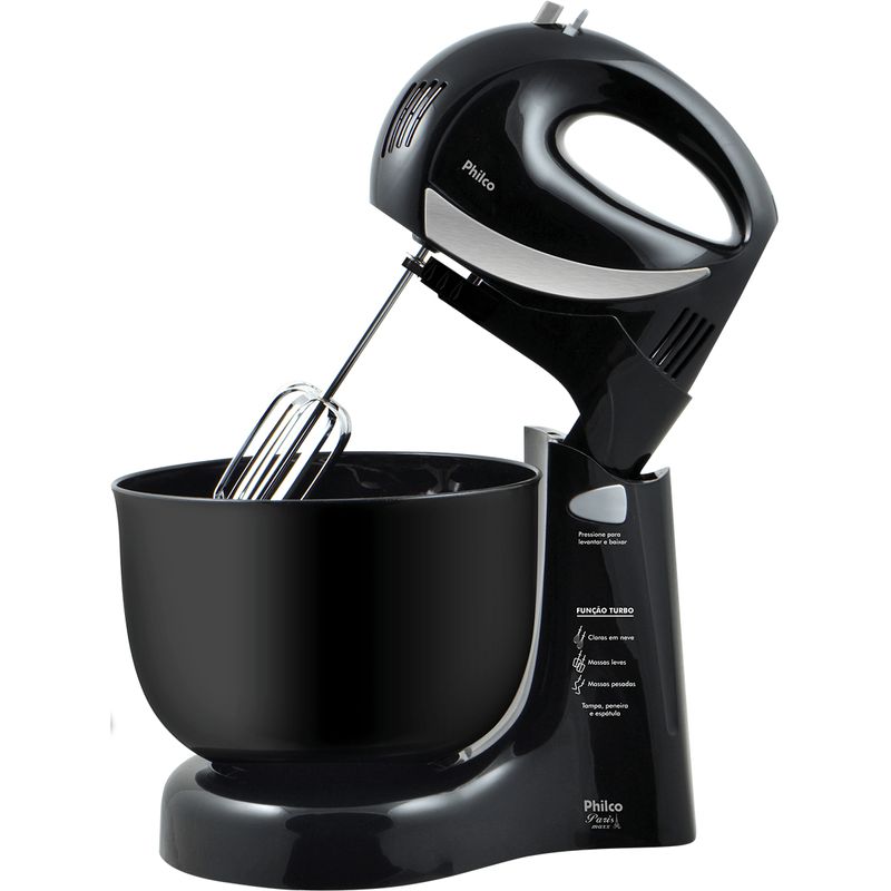 • Preparar tantas receitas deliciosas nunca foi tão prático e prazeroso. Com a Batedeira Philco Paris Maxx 350W suas receitas vão ser um sucesso! • Possui 350W de potência, 4 velocidades e função turbo, garantindo a performance ideal para cada receita; • Com 2 tigelas plásticas, uma com capacidade para 4 litros e outra para 3 litros; •Acompanha espátula acoplada, que raspa automaticamente as paredes da tigela, evitando o acúmulo de massa enquanto prepara os alimentos, também peneira, encaixada na tigela; • Possui ainda 3 pares de batedores para claras em neve, massas leves e massas pesadas, que preparam clara em neve, chantili, massa para pudins, mousses, pizzas e muito mais; • Além da tampa anti-respingos com abertura, caso você se esqueça de algum ingrediente pode adicionarpela abertura da tampa; • Para garantir a sua segurança, possui pés antiderrapantes; • Todas essas funcionalidades estão a sua espera, dispostas a tornar a sua experiência com a cozinha ainda melhor!