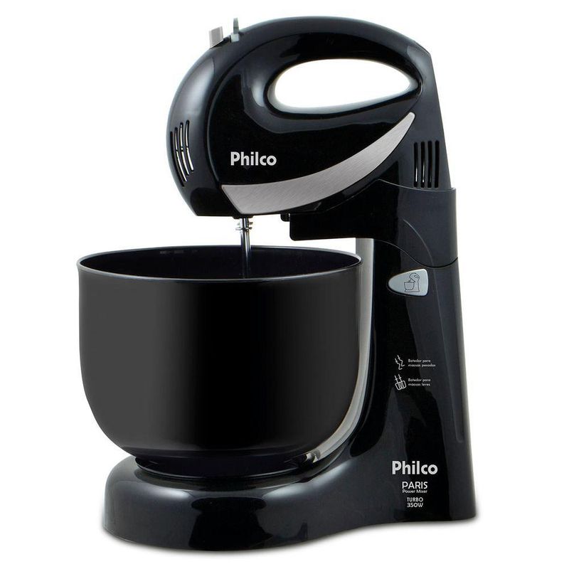 Batedeira Philco Paris Power Mixer Turbo Portátil 350W 110VBatedeira Philco Paris Power Mixer Turbo tem alta potência de 350W e possibilidade de uso portátil. É muita praticidade. E aliada aos batedores em aço inox para massas leves e massas pesadas, ajuda a colocar em prática qualquer receita, dando textura ideal à massa e misturas diversas.São 4 velocidades + Função Turbo para variar e escolher a que melhor te atende durante o preparo. A tigela plástica é de 4 litros, os preparos podem ser tamanho família. É o que você precisa para fazer qualquer receita, principalmente aquelas que anotou faz tempo e nunca colou em prática, a Paris Power Mix ajuda você! Principais Características:- Potência 350W;- 4 velocidades + Função Turbo;- 01 Tigela Plástica de 4L;- 01 Par de batedor em aço inox para massas leves;- 01 Par de batedor em aço inox para massas pesadas;- Botão ejetor dos batedores;- Botão de articulação;- Unidade motora pode ser usada fora da base como portátil;- Possui decoração metálica em aço inox liso.Observação: Somente faturamos para o nosso consumidor final, ou seja, não faturamos pedidos para CNPJ por este portal de vendas.Especificações Técnicas:Estado: NovoCor: PretoTigela extra: NãoCapacidade da tigela (L): 4Potência (W): 350Velocidades: 4Altura do produto: 31,4 cmLargura do produto: 33,6 cmComprimento do produto: 23 cmPeso do produto: 1,457 kgAltura com embalagem: 27,6 cmLargura com embalagem: 30,8 cmComprimento com embalagem: 22,4 cmPeso com embalagem: 1,706 kgGarantia (Dias): 360