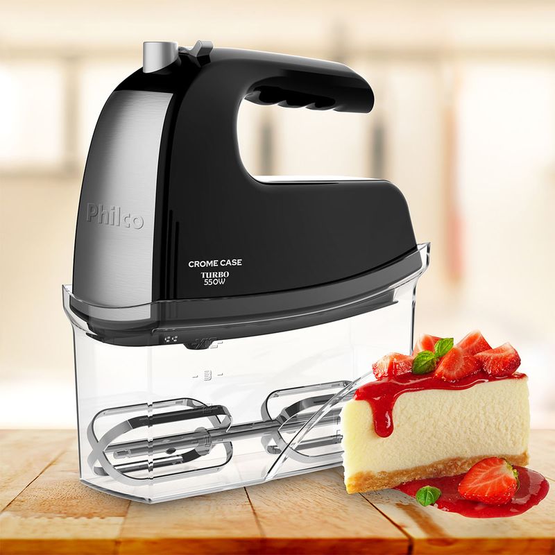 Dê atenção aos detalhes de cada receita! A Batedeira Philco PBT450P Crome Case 550W possui Case Acoplada é perfeita para preparar pequenas receitas. Ideal para preparar claras em neve, bolos pudins, mousses, chantili, maionese, variados cremes de forma rápida e eficiente. Conta com alça ergonômica e confortável para o uso no dia a dia. • 4 velocidades + Turbo; • Potência de 550W • Unidade motora usada como portátil; • Botão ejetor dos batedores; • Batedeira Portátil; • Acompanha 1 par de batedores para massas leves; • Case acoplada para guardar os batedores quando não estiver em uso; • Decoração em aço inox;