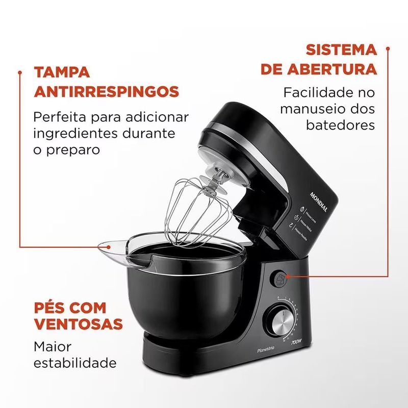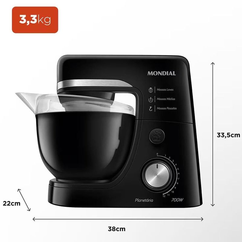 Batedeira Planetária Mondial BP-03 com 12 Velocidades e 700W – Preto