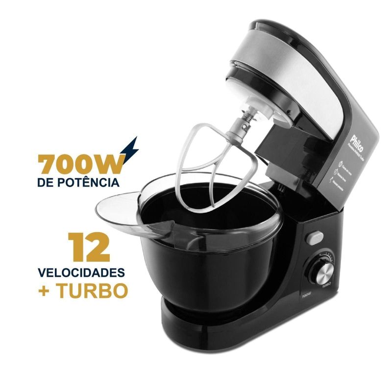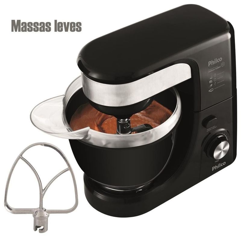 Um mundo de possibilidades para suas receitas com a Batedeira Planetária Philco PHP500 Turbo. Com 11 velocidades, mais a Função Turbo, aliada aos 500W de potência, é a combinação perfeita para você fazer todos os tipos de receitas de forma prática, ágil e fácil. Ela mistura de maneira uniforme todos os ingredientes! Vem com batedores específicos para cada tipo de receita com o batedor de claras em neve, de massas leves e massas pesadas. Nada de bater massa pesadas na mão, com a PHP500 Turbo, as massas densas, com as de pão são facilmente batidas e o resultado são lindas massas homogêneas e prontas para as etapas de preparo. Moderna, com acabamento frontal em aço inox, possui botão de acionamento para levantamento do corpo da batedeira, tampa antirrespingos para mais praticidade e higiene na sua cozinha, inclusive ajuda colocar mais ingredientes enquanto bate. Sua tigela tem capacidade para 4 litros, ou seja, prepara grandes receitas de uma só vez. O controle eletrônico de velocidade permite acertar o ponto da massa e aumentar gradativamente a velocidade do batedor sem prejudicar o andamento e preparo. Batedeira Planetária Philco PHP500 Turbo é ideal para todos os tipos e tamanhos de receitas. Solte sua imaginação e viva essa nova experiência!