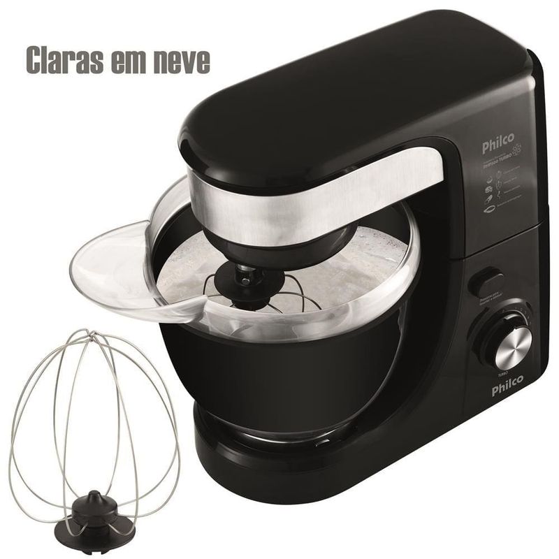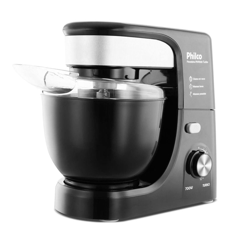 Um mundo de possibilidades para suas receitas com a Batedeira Planetária Philco PHP500 Turbo. Com 11 velocidades, mais a Função Turbo, aliada aos 500W de potência, é a combinação perfeita para você fazer todos os tipos de receitas de forma prática, ágil e fácil. Ela mistura de maneira uniforme todos os ingredientes! Vem com batedores específicos para cada tipo de receita com o batedor de claras em neve, de massas leves e massas pesadas. Nada de bater massa pesadas na mão, com a PHP500 Turbo, as massas densas, com as de pão são facilmente batidas e o resultado são lindas massas homogêneas e prontas para as etapas de preparo. Moderna, com acabamento frontal em aço inox, possui botão de acionamento para levantamento do corpo da batedeira, tampa antirrespingos para mais praticidade e higiene na sua cozinha, inclusive ajuda colocar mais ingredientes enquanto bate. Sua tigela tem capacidade para 4 litros, ou seja, prepara grandes receitas de uma só vez. O controle eletrônico de velocidade permite acertar o ponto da massa e aumentar gradativamente a velocidade do batedor sem prejudicar o andamento e preparo. Batedeira Planetária Philco PHP500 Turbo é ideal para todos os tipos e tamanhos de receitas. Solte sua imaginação e viva essa nova experiência!