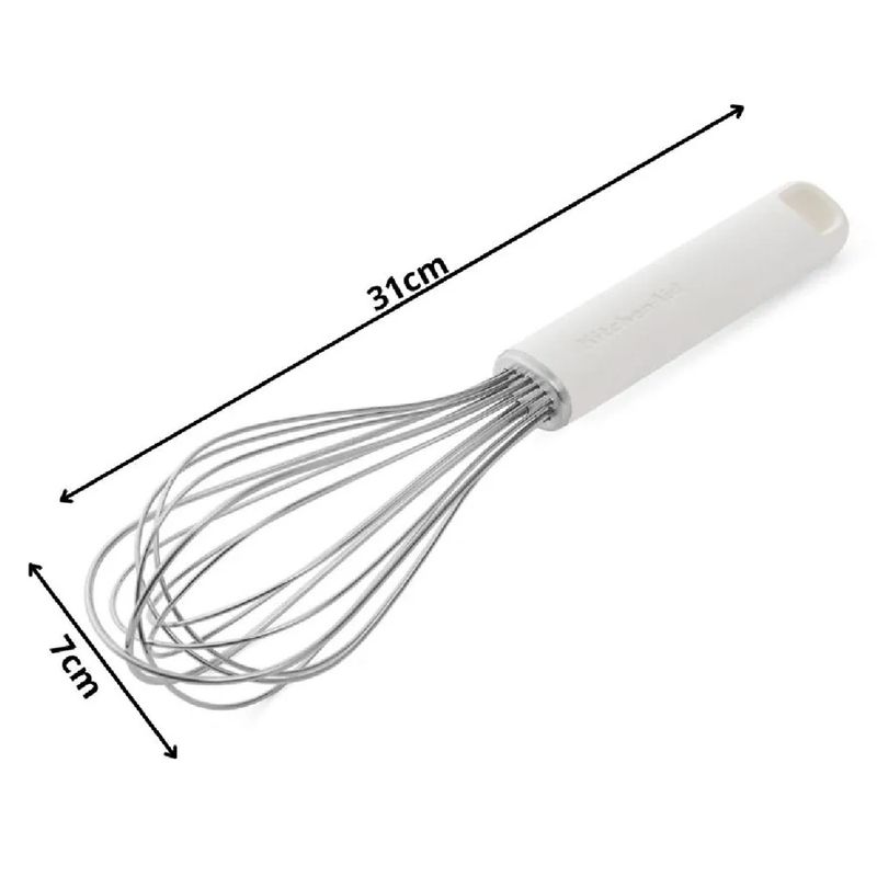 O batedor fouet da coleção clássica kitchenaid é ideal para incorporar ar às preparações e garantir misturas mais leves, lisas e homogêneas. Versátil, atende com excelência desde receitas delicadas até usos mais frequentes no dia a dia, oferecendo desempenho consistente e confiável.Fabricado com fios em aço inox e cabo ergonômico em ABS com acabamento fosco, proporciona pegada firme, confortável e higiênica mesmo em usos prolongados. O design moderno valoriza a cozinha, enquanto a alça integrada permite pendurar o utensílio, mantendo o espaço organizado com praticidade e estilo. - Destaques:• ideal para merengues, chantilly, claras em neve, massas leves, cremes e molhos• fios em aço inox para mistura eficiente e uniforme• cabo ergonômico em ABS com acabamento fosco• resistente ao calor até 232 °c• pode ser lavado na lava-louças• alça integrada para pendurar - Especificações:• material: aço inox e plástico ABS livre de BPA• cor: branco• peso: 142g• largura: 7cm• comprimento: 31cm - Observações:• não utilizar em contato direto com chamas• evitar uso com utensílios cortantes para preservar os fios• manter fora do alcance de crianças