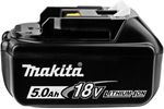 Bateria de íons de lítio. Com indicador de nível de carga. Alta autonomia de trabalho Sem efeito memória. Recarga rápida. Resistente à quedas. Mantém carga ociosa por longo período. Especificações: modelo: BL1850B Voltagem: 18V Amperagem: 5Ah Capacidade de energia: 90Wh SKU: 11400021