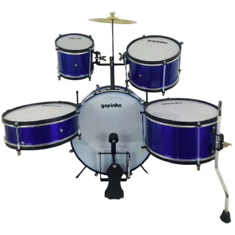 BATERIA GOPE INFANTIL Descubra a melhor bateria infantil! Instrumentos musicais especialmente projetados para crianças, com qualidade, durabilidade e sonoridade excepcionais. Inicie a jornada musical dos pequenos com os melhores instrumentos infantis. Especificações técnicas - COR ARO Preto - COR CORPO: ALUMINIO AZUL - PELE: Leitosa Incluso: - 01 Ton 6'' x 15cm - 01 Ton 8'' x 15cm - 01 Surdo 10'' x 15cm - 01 Caixa 10'' x 10cm com esteira - 01 Bumbo 14'' x 20cm - 01 Prato - 01 Par de baqueta - 01 Banco - 01 Pedal - Afinadores