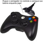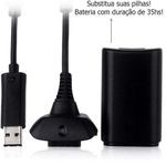 Bateria 12000MAH recarregável + cabo carregador para controle wireless de xbox 360 CARACTERÍSTICAS Com o Kit para Xbox 360 você pode manter seu controle sem fio para Xbox 360 sempre carregado. Através de um adaptador e uma bateria de NiMH recarregável, você não precisa utilizar pilhas ou deixar sua diversão de lado enquanto carrega seu controle sem fio. é rápido e prático, pois carrega diretamente a bateria. Você ainda pode recarregar sua bateria mesmo em modo Stand By. Obtenha a informação sobre o nível de bateria na tela da TV utilizando o botão Guia do seu Xbox 360. Divirta-se sem parar por até 20 horas contínuas por recarga. O cabo USB permite que você continue jogando enquanto carrega a bateria do seu controle Funciona no controle de todos os Xbox 360 Carrega na própria entrada USB do videogame Pode ser carregado na entrada USB do computador ESPECIFICAÇÕES Bateria Ni-MH Recarregável. Capacidade de 12000mah. Cabo usb. Tempo De Carga De 3 A 4 Horas Led indicador de Bateria. Marca: feir Compatível com Xbox 360 e Xbox 360 Slim.