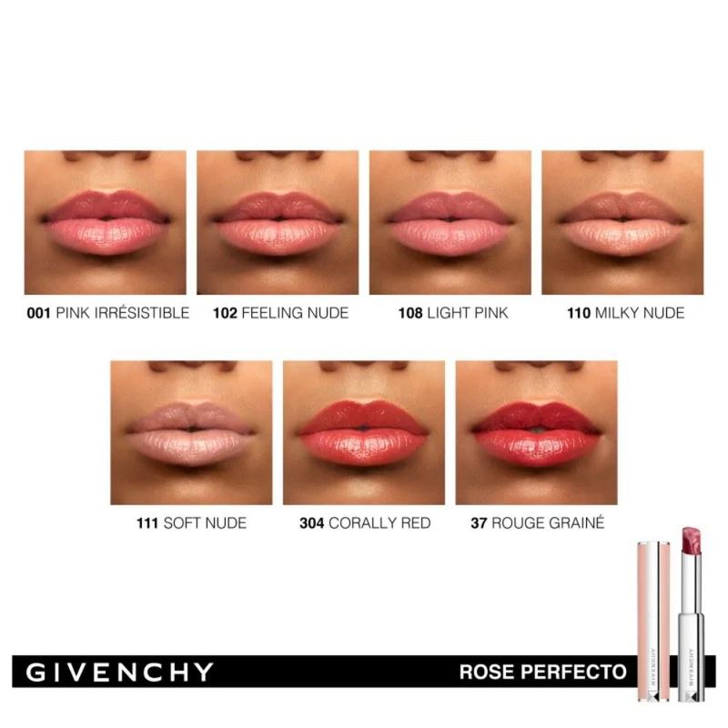 Batom Le Rose Perfecto Givenchy N108 2,8gO Batom Le Rose Perfecto de Givenchy, conta com o colorido de um batom e o cuidado de um protetor labial. Ele incorpora a combinação perfeita de cuidados com os lábios e cor.Le Rose Perfecto colore, hidrata e enche os lábios. Sua textura híbrida e cremosa envolve os lábios para uma beleza instantânea.A paleta de cores oferece doze tons essenciais, uma gama de tons que vão do rosa ao roxo profundo, coral e uma sombra translúcida iridescente.Ativos:Enriquecido com manteiga de karité e extrato de pimenta rosa, le Rose Perfecto envolve intensamente os lábios com uma sensação de cuidado confortável e inchaços instantaneamente.• Manteiga de Karité: Suaviza e hidrata profundamente os lábios para uma sensação intensa e confortável.• Esferas de ácido hialurônico: Smoothe e lábios carnudos imediatamente, preservando a hidratação natural da pele.• Extrato de pimenta rosa: protege os lábios.Modo de Usar:Pode ser usado de três formas diferentes.• Aplique sozinho como protetor labial ou como base antes do batom.• Aplique sozinho como um batom para os lábios limpos e coloridos.• Aplique sozinho como um batom ou como um top coat para adicionar glitters.Sobre a Marca:Hubert de Givenchy é uma figura legendária. Em 1952, ele abria sua maison em Paris, revolucionando a alta costura. O primeiro designer a apresentar uma coleção prêt-à-porter feminina lançou em 1957 seu primeiro perfume,"Le De". Já no século 21, Liv Tyler é o rosto de "Very Irrésistible Givenchy", um mix da elegância francesa e espontaneidade americana, presente em todas as coleções do estilista.EspecificaçõesCor: Pink Nude Apresentação: BastãoResistência: Longa DuraçãoEfeito: TradicionalProteção Solar: Com Fps