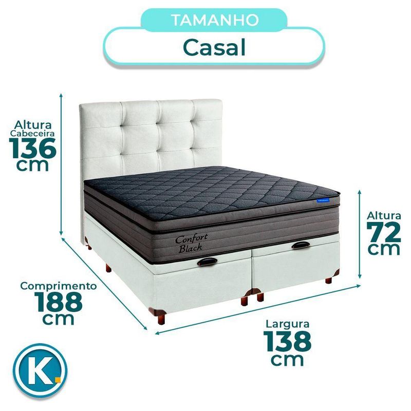 Baú Branco + Cabeceira + Colchão Casal Confort Black OrtobomConjunto Casal Colchão Confort Black + Cama Box Bau Branco + CabeceiraO Colchão Confort Black Ortobom une tecnologia e conforto para um sono de qualidade. Conta com pillow top em espuma D28 selada, que garante maciez, resiliência e durabilidade.Sua estrutura interna em EPS de alta resistência oferece suporte firme e estável, mantendo a ergonomia ideal.Base baú Casal com 42cm de altura e amplo espaço interno para organizaçãoRevestimento em Material Sintético resistente, fácil de limpar e com visual modernoEstrutura reforçada com capacidade para até 150KgFicha Técnica Colchão:Modelo: Confort BlackMarca: OrtobomTamanho: CasalDensidade: D28Conforto: FirmeTecido: PoliésterLargura: 138cmComprimento: 188cmAltura: 30cmSuporte de Peso: 120KgGarantia: 3 MesesFicha Técnica Cama Box Bau:Modelo: Elite BiPartidoMarca: NatureTamanho: CasalTecido: Material SintéticoLargura: 138cmComprimento: 188cmAltura: 35cmAltura dos Pés: 7cmMaterial dos Pés: MadeiraSuporte de Peso: 150KgPeso: 35KgGarantia: 3 MesesFicha Técnica Cabeceira:Modelo: AliceMarca: NatureTamanho: CasalTecido: Material SintéticoLargura: 138cmAltura: 136cmGarantia: 3 MesesAtenção:Antes da compra certifique-se de que o produto passa por elevadores, portas e corredores.As transportadoras não realizam entregas por escadas ou içamentos.Caso o item não caiba no elevador, a entrega será considerada concluída no térreo do prédio.A cor e tonalidade do produto pode variar de acordo com o dispositivo que o usuário está acessando.