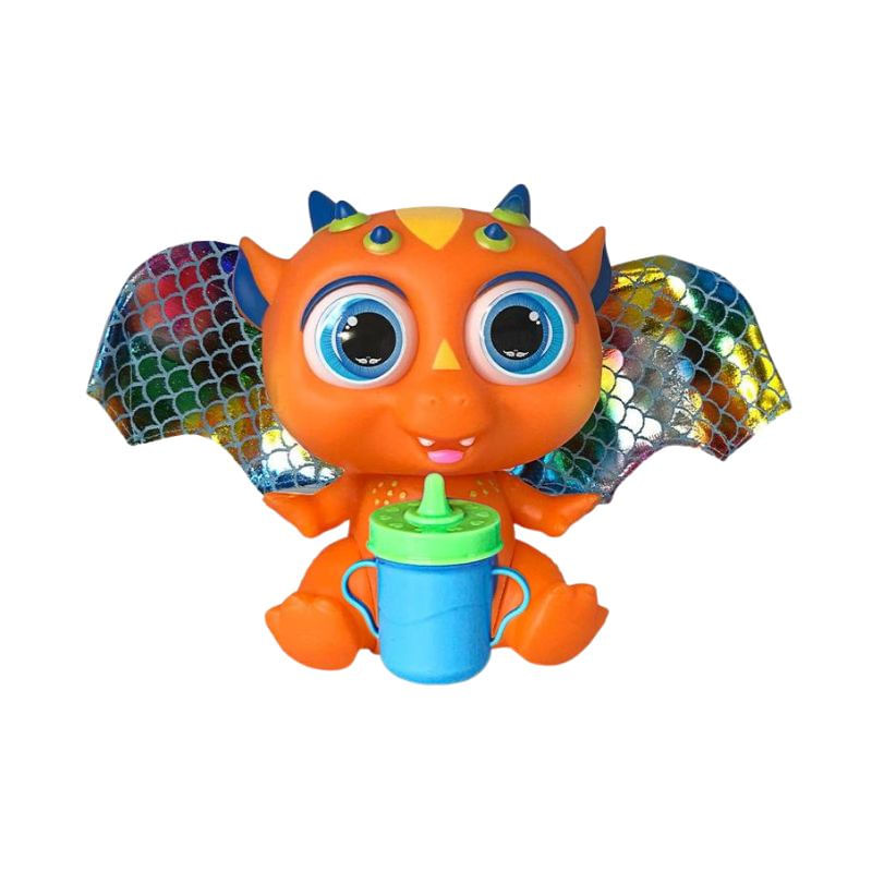Bebê Dragão Flying Baby Com Asas Laranja Conto de Fadas ===================================== Contém: 01 Bebê Dragão 01 Mamadeira Especificações: - Material: Polietileno e Vinil - Medida com Asas Fechadas: 22cm x 16cm - Medida com Asas Abertas: 22cm x 32cm - Peso: 330 gramas - Cor: Laranja - Registro Inmetro: CE-BRI/IQB 4115 NM 300/2002 * ATENÇÃO * Não indicado para crianças menores de 03 anos por conter peças pequenas que podem ser engolidas ou aspiradas. A embalagem contém fechos metálicos, retirar antes de entregar o brinquedo para a criança. ===================================== Devido à diferença entre monitores e iluminação diferentes, pode haver variação na tonalidade apresentada no anúncio. Medidas muito aproximadas.