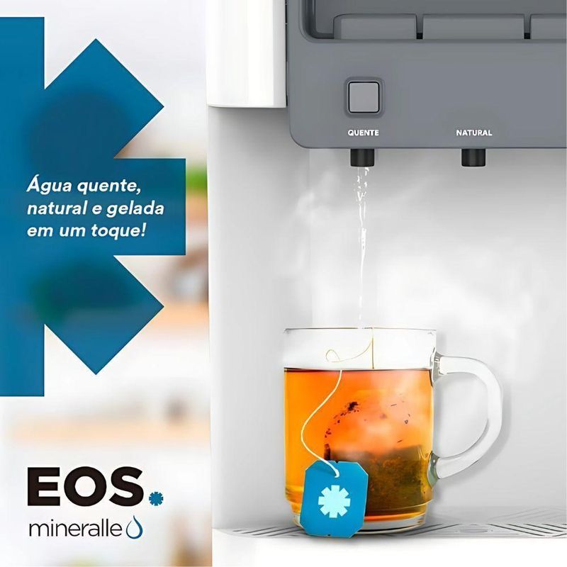 Bebedouro Água Quente Natural E Gelada Eletrônico Branco Galão Mineralle EOS B198238 EBE06QB 220VMUITO IMPORTANTE:CONFERIR PRODUTOS NO ATO DO RECEBIMENTO. NÃO ACEITAR PRODUTOS COM EMBALAGEM VIOLADA (AMASSADO, RASGADO, ABERTO, QUEBRADO, ETC), A RECUSA DEVE SER FEITA NO ATOBebedouro Agua Quente Natural e Gelada Eletrônico Branco Galão Mineralle Ebe06qb 220v - Eos B198238Conquiste sua hidratação em casa ou no escritório com o Bebedouro Eletrônico Mineralle Ebe06qb. É a escolha perfeita para quem busca água pura e filtrada, com a conveniência de ter água quente, natural ou gelada sempre à mão. Ideal para famílias, escritórios e pequenos comércios, este bebedouro traz mais praticidade ao seu dia a dia. Seu sistema eletrônico garante o resfriamento e aquecimento rápido da água, permitindo que você prepare chás, cafés ou mate sua sede com água gelada instantaneamente.Com a capacidade de aquecer a água a até 85 °C e gelar a 10 °C, o bebedouro atende a todas as suas necessidades. Ele possui um sistema eletrônico de resfriamento que, junto com a sua potência, garante um desempenho eficiente com baixo consumo de energia. Sua bandeja coletora removível facilita a limpeza e manutenção, enquanto as travas de segurança na saída de água quente evitam acidentes. Não perca a oportunidade de ter a temperatura ideal da água a qualquer momento! Adquira agora o Bebedouro Eletrônico Mineralle Ebe06qb e desfrute de mais praticidade e segurança.Especificações Técnicas:- Modelo: EBE06QB 220V- Fabricante: EOS- Capacidade: Galões de 10 e 20 Litros- Cor: Branco- Frequência (Hz): 60Hz- Garantia: 12 meses- Informações Adicionais: Grau de Protação IP: IPX0 Capacidade de Aquecimento de água (L/h): 5 Capacidade de resfriamento de água (L/h): 1- Peso Líquido (Kg): 4,5kg- Potência (W): Aquecimento (W): 500; Resfriamento (W): 60- Refrigeração Por: Placa Eletrônica- Silencioso: Sim- Voltagem: 220V- Água: Quente, Natural e Fria- Local de colocação: Bancada- Medida (LxAxP/cm): 30 x 49 x 33cmPerguntas Frequentes:- Qual o tipo de galão que posso usar?O bebedouro é compatível com galões de 10 e 20 litros, oferecendo flexibilidade para suas necessidades.- Ele fornece água em quais temperaturas?Você pode ter água quente, natural ou fria. O sistema eletrônico aquece a água e a resfria eficientemente.- Onde posso colocá-lo?O modelo foi projetado para ser colocado em bancadas, otimizando o espaço da sua cozinha, escritório ou qualquer outro ambiente.Tipo de Alimentação: Elétrico | Cor: Branco | Utensílio para Bebida: 1 | Peso do Produto: 5kg | Utensílio Indicado: 1 | Lugar de Colocação: Bancada | Voltagem: 220V