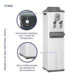 Bebedouro De Coluna Para Garrafão Master Branco 220V LibellA tradição da qualidade Libell. O Bebedouro Master CGA foi o primeiro produto a ser fabricado pela Libell e trouxe ao mercado a inovação e a modernidade que o consumidor queria. Seu sistema de refrigeração por compressor gela a água de 4°C a 15°C, variação essa que pode ser regulada pelo termostato localizado na parte lateral do bebedouro.- Gabinete sem emendas;- Gabinete em aço eletrozincado branco, o que permite mais vida útil ao produto;- Tampa, aparador de copos, base do aparador de copos e separador de água em polipropileno;- Conexões hidráulicas internas atóxicas;- Torneiras em plástico ABS de maior resistência;- Termostato fixo externo para ajuste de temperatura entre 4 e 15°C, com sete níveis de temperatura;- Reservatório de água em plástico atóxico;- Torneiras independentes para água natural e água gelada;- Pingadeira removível;- Alças laterais;- Regulagem externa de temperatura.ESPECIFICAÇÕES:- Modelo: Master CGA;- Medidas do produto (AxLxP): 960x275x365 mm;- Capacidade de resfriamento: 2,8 L/h (ambiente a 25°C);- Temperatura: 4°C a 15°C;- Potência: 176 W;- Cor: Branco;- Peso: 8,88 kg;- Voltagem: 220V.Voltagem: 220V | Modelo: Master | Cor: Branco