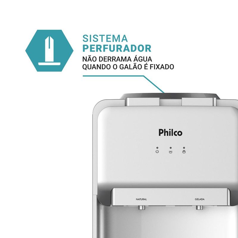 Tome uma água natural ou gelada com total conforto e praticidade! Tenha no conforto do seu lar o Bebedouro Philco 20 Litros PBE18 com capacidade para garrafão de 10L ou 20L. Por possuir dispositivos inteligentes, não é necessário retirar o lacre na hora de colocá-lo no lugar, isso porque o sistema perfumador integrado realiza essa tarefa, evitando assim, qualquer tipo de derramamento. O Bebedouro Philco PBE18 possui duas torneiras, sendo uma para água natural e outra gelada. É equipado com sistema de resfriamento por compressor que garante água muito mais gelada e de forma contínua. Sua capacidade de refrigeração é de 1,8L/h e a temperatura de água gelada é de 6-12°C (pode variar de acordo com a temperatura ambiente). Tudo isso, com uma badeja coletora de água removível, ou seja, facilita na hora da limpeza. Tenha água natural e gelada sempre à disposição. Garanta já o seu Bebedouro Philco 20 Litros PBE18! • Água natural e gelada • Perfurador de lacre do galão - Não necessita retirar a tampa do garrafão para instalar no bebedouro • Bandeja coletora de água removível • Sistema de resfriamento por compressor • Capacidade de refrigeração de 1,8L/h • Temperatura de água gelada 6-12°C (pode variar de acordo com a temperatura ambiente) • Vazão de água gelada 2,0l/min • Vazão de água natural 2,0l/min • Dreno para remoção de água e limpeza • Não contém CFC • Gás refrigerante R 600ª.