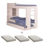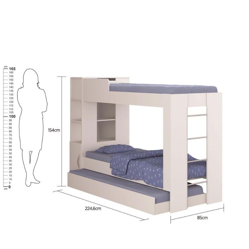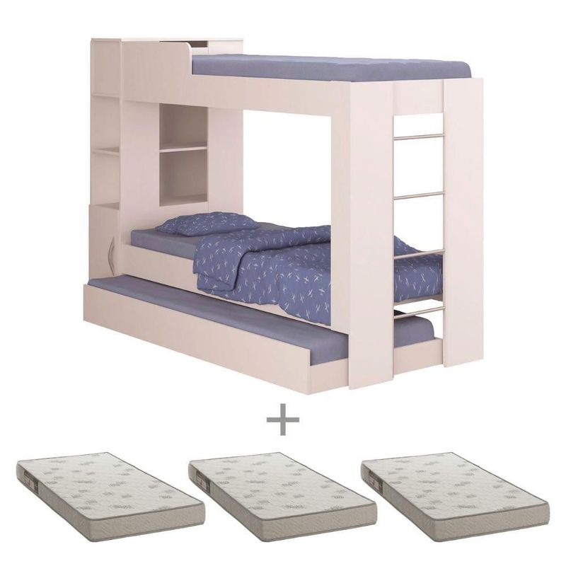 Beliche Cama Aux C/ 3 Colchões Ditália Treliche Cm-15 BrancoSeu quarto vai ficar muito mais bonito e organizado com o Triliche COM COLCHÕES Ditália , Alt-154,00 x Larg-224,60 x Prof-85,00 cm, Peso bruto 91,86 Kg - O produto possui design moderno e funcional, possui bau, armário e prateleiras. Possui duas camas mais cama auxiliar com rodizíos, que suportam até 85 kg cada.CARACTERÍSTICAS- Revestimento Impressão Ultravioleta (UV) com acabamento alto brilho- Produzido em MDP 15mm- Possui três camas, todas para colchão de tamanho 1,88 x 78 x 12- Possui armário, bau e prateleiras- Cama auxiliar com rodíziosINFORMAÇÕES TÉCNICAS- Peso: 91,86 Kg- Altura: 154,00 cm- Largura: 224,60 cm- Profundidade: 85,00 cm- Acompanha Kit Ferragens e Esquema de Montagem (Montagem não inclusa).- Este produto é vendido desmontado 03 Volumes embalados em caixas de papelão com isopor nas laterais e revestidos com plásticos termoencolhível.- Fixação é feita por Girofix, Cavilhas e Parafusos, não é necessário parafusar na parede.LIMPEZALimpar utilizando apenas pano umedecido com água, nunca utilizar abrasivos ou esponjas de aço.GARANTIAGarantia de 3 meses (contra defeito de fabricação).OBSERVAÇÕES- As dimensões estão expressas em cm na seguinte forma: Altura x Largura x Profundidade.- Montar o móvel deitado de costas.- Forrar o chão com o papelão das embalagens, aconselhamos a ser feita por um profissional, não expor o móvel a fontes de calor ou de umidade.- As imagens indicam uma sugestão de uso e são apenas ilustrativas, os objetos decorativos não estão inclusos.PERGUNTAS FREQUENTES1 - O produto é entregue montado?Resposta: Nossos produtos são entregues desmontados. Os móveis são acompanhados de todos componentes necessários (manual de montagem, parafusos, pregos, puxadores e etc..) para que possam ser montados com facilidade.2 - Vocês oferecem serviço de montagem?Resposta: Não disponibilizamos este serviço.3 - Qual o valor da entrega?Resposta: O valor referente a entrega dependerá do destino final da mercadoria, para calcular o valor, é considerado o CEP do consumidor.4 - Os produtos são novos?Resposta: Sim, trabalhamos apenas com produtos novos.5 - Vocês atendem todos os estados do Brasil?Resposta: Sim, enviamos nossos para todo o Brasil.6 - Os colchões acompanham o produto?Resposta: Sim, os 3 colchões acompanham o produto.Marca :DITÁLIAGarantia :3 Meses