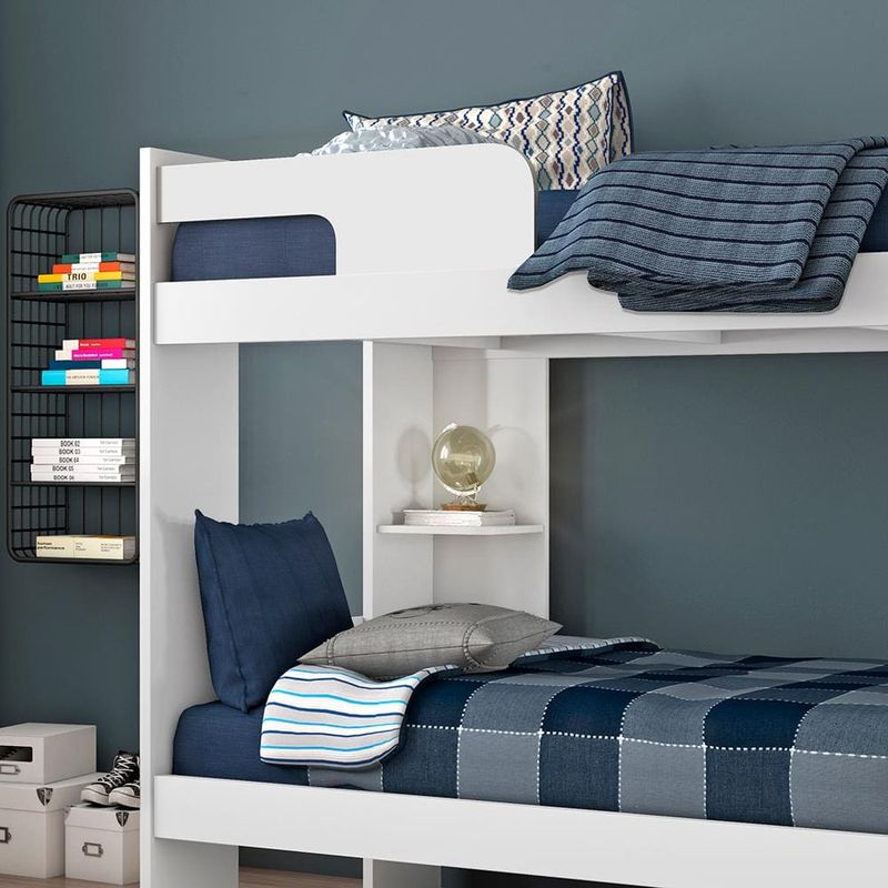 Faça do dormitório da sua casa um espaço muito mais funcional, eficiente e completo compondo esse ambiente com a beliche Conquista Lucca!Perfeita para deixar o quarto mais organizado, esse incrível móvel combinará lindamente com a decoração do ambiente. Feita em MDP de altíssima durabilidade e resistência, ela conta com acabamento em pintura UV, design diferenciado, escada fixa de fácil utilização e prateleira disponível na cama inferior.E mais, para garantir maior segurança, essa beliche ainda vem equipada com grade de proteção na cama superior.