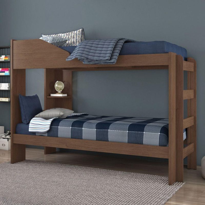Beliche Solteiro Indy 088 Cacau Conquista CacauA Beliche Indy e fabricada com material MDF e MDP. A cama superior e acessivel atraves de uma escada fixa, que e integrada a estrutura da beliche e planejada para ser segura e facil de usar. O produto e uma excelente escolha para quem procura uma solucao de cama pratica, confortavel e segura para dois usuarios.Dimensoes:Altura: 150 cm | Largura: 203 cm | Profundidade: 97 cmCaracteristicas:- Estrutura MDP/MDF 12, 15, 18 e 25 mm- Acabamento/Pintura: Brilho- Nao se transforma em duas camas- Altura entre as camas: 78 cm- Compativel para colchoes de 88x188 cm (NAO INCLUSOS)- Possui prateleira porta objetos- Possui protecao antiqueda- Suporta 80 kg por cama distribuido- Garantia de 03 meses** Imagens ilustrativas. Objetos nao acompanham o produto. Colchoes nao inclusos.** O produto e enviado desmontado.AVISO: Esclarecemos que a Opcao Moveis se responsabilizara pela dos produtos adquiridos ate a porta de entrada ou portaria do endereco indicado, ou seja: e de total responsabilidade do cliente a montagem, desmontagem e instalacao do produto adquirido. Para evitar futuros desagrados ou imprevistos com a , tambem e necessario que o cliente confira as dimensoes do produto escolhido, antes de finalizar a compra, devendo certificar-se de que a mercadoria passara normalmente por elevador, porta, escada e corredor.