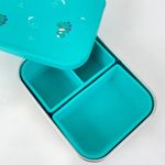 BENTO BOX AÇO INOX COM DIVISÓRIAS E TAMPA SILICONE - LEO - PETIT PIA A Bento Box Petit Piá Leo Dinossauro é a escolha perfeita para garantir lanches saudáveis e divertidos para o seu filho. Com design moderno e funcional, ele é ideal para levar para a escola, passeios e viagens.Características: Material: Aço inoxidável de alta qualidade, livre de BPA e fácil de limpar.Divisórias removíveis: Permite separar diferentes tipos de alimentos, mantendo-os frescos e organizados.Tampa de silicone: Garante um fechamento hermético, evitando vazamentos.Design divertido: Estampas coloridas e personagens adoráveis que as crianças amam.Durabilidade: Resistente a quedas e impactos, acompanhando a rotina agitada das crianças.Benefícios: Alimentação saudável: Incentive seu filho a levar lanches nutritivos para a escola.Menos desperdício: A tampa hermética mantém os alimentos frescos por mais tempo.Autonomia: Ensine seu filho a ter independência na hora do lanche.Diversão: As estampas divertidas e coloridas tornam a hora do lanche mais alegre.Ideal para: Escola: Leve o lanche do seu filho para a escola de forma prática e segura.Passeios: Perfeito para levar em viagens e passeios ao ar livre.Pícnic: Ideal para organizar um piquenique divertido e saudável. Garanta já o Bento Box Petit Piá e proporcione momentos de alegria e diversão para o seu filho!