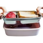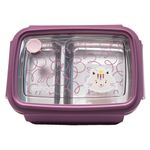 Bento Box Inox com Divisória Roxo Milky - Clingo - Base plástica pode ser utilizada para armazenar talheres - Válvula de saída de ar - Quatro travas de fechamento - Tampa hermética com vedação de silicone - Compartimento interno com aço inoxidável que ajuda a manter a temperatura - Inox Antimicrobiano - Pode ser levado ao lava louças - Pode ser levado ao freezer Composição: - Silicone, Acrilonitrila Estireno, Borracha Termoplástica, Polipropileno e Aço Inoxidável Conteúdo da embalagem: - 01 Bento Box com Divisória - Clingo Medidas da Embalagem: 7cm x 18cm x 13cm Peso da Embalagem: 0.26kg