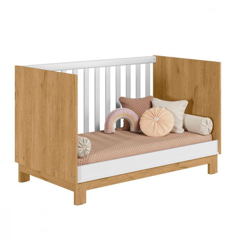 Berço Americano 2 Em 1 Encanto Slim Mini Cama Freijo Branco Freijo Com BrancoPraticidade que acompanha o crescimento do seu bebe. Nosso berco 2 em 1 vira mini cama, oferecendo conforto, seguranca e muito amor em cada fase da infancia!Dimensoes: Altura: 83 cm | Largura: 74 cm | Comprimento: 133 cm Caracteristicas: - Estrutura MDP 15mm e MDF - Estrado em MDF de 06mm - Travessas em MDF de 25mm - Grade fixas em MDF de 12 e 25mm - Produto com 3 regulagens de altura do estrado - Pode ser transformado em mini cama - Acompanha suporte para mosquiteiro - Pes em MDF de 25mm - Acabamento/Pintura: Fosco - Medida do colchao 130x0,70 (nao incluso) - Suporte de peso: 40kg distribuidos - Garantia de 3 meses ** Imagens ilustrativas. Objetos nao acompanham o produto. NAO ACOMPANHA COLCHAO. ** O produto e enviado desmontado. AVISO: Esclarecemos que a Opcao Moveis se responsabilizara pela entrega dos produtos adquiridos ate a porta de entrada (casas) ou portaria (predios ou condominios) do endereco indicado, ou seja: e de total responsabilidade do cliente a montagem, desmontagem e instalacao do produto adquirido. Para evitar futuros desagrados ou imprevistos com a entrega, tambem e necessario que o cliente confira as dimensoes do produto escolhido, antes de finalizar a compra, devendo certificar-se de que a mercadoria passara normalmente por elevador, porta, escada e corredor.
