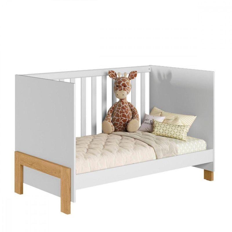 Berço Americano 2 Em 1 Mini Cama Fantasia Branco Qmovi BrancoSono tranquilo, sonhos felizes. O berco perfeito para o conforto e a seguranca do seu bebe!Dimensoes: Altura: 85 cm | Largura: 74 cm | Comprimento: 138 cm Caracteristicas: - Estrutura MDP 15mm e MDF - Estrado em MDF de 06mm - Travessas em MDF de 25mm - Grade fixas em MDF de 12 e 25mm - Produto com 3 regulagens de altura do estrado - Pode ser transformado em mini cama - Acompanha suporte para mosquiteiro - Pes em MDF de 25mm - Acabamento/Pintura: Fosco - Medida do colchao 130x0,70 (nao incluso) - Suporte de peso: 40kg distribuidos - Garantia de 3 meses ** Imagens ilustrativas. Objetos nao acompanham o produto. NAO ACOMPANHA COLCHAO. ** O produto e enviado desmontado. AVISO: Esclarecemos que a Opcao Moveis se responsabilizara pela entrega dos produtos adquiridos ate a porta de entrada (casas) ou portaria (predios ou condominios) do endereco indicado, ou seja: e de total responsabilidade do cliente a montagem, desmontagem e instalacao do produto adquirido. Para evitar futuros desagrados ou imprevistos com a entrega, tambem e necessario que o cliente confira as dimensoes do produto escolhido, antes de finalizar a compra, devendo certificar-se de que a mercadoria passara normalmente por elevador, porta, escada e corredor.