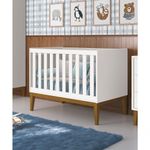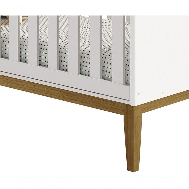 Berço Americano Classic New Branco Fosco Com Madeira - MoveisaquiO Berço Americano Classic New - MóveisAqui possui um ar retrô que traz charme ao quartinho do seu baby, possui os pés em madeira maciça, com um desing atemporal combina com vários estilos de decoração. Além de poder transformar-se em mini cama, para que possa continuar a ser , mesmo a pós a transição do bebê.Dimensões do Produto Montado:Altura: 97 cmLargura: 135 cmProfundidade: 76 cmObservações:- Berço Certificado pelo INMETRO 002667/2018;- Transforma-se em mini cama;- Padrão Americano;- Cantos arredondados;- Acompanha suporte de mosquiteiro;- 03 regulagens de altura do estrado;- Colchão Recomendado: 130cm x 70cm x 12cm Densidade: D18 (colchão não incluso);- Pés na cor Madeira;- Pintura ultravioleta com acabamento fosco.