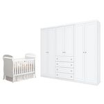Berço Americano Danny Branco Acetinado Reller E Guarda Roupa Casal Americano 6 Portas Branco Hp - Henn.Berço Americano Danny Branco Acetinado Reller e Guarda Roupa Casal Americano 6 portas Branco HP - Henn.Conjunto Berço Americano Danny Branco Acetinado e Guarda-Roupa Casal Americano Henn com 6 portas na cor Branco HP, ideal para quem busca funcionalidade e harmonia no ambiente. O berço oferece conforto e segurança para o bebê, enquanto o guarda-roupa conta com amplo espaço interno para organização. Design moderno, excelente acabamento e qualidade Henn para um espaço prático e elegante.Berço Americano Danny Branco Acetinado – RellerCaracterísticas:-Certificado pelo INMETRO-Transforma-se em sofazinho-Padrão Americano-Cantos arredondados-03 regulagens de altura do estrado-Estrado de madeira reflorestada-Grade Fixa-04 Rodízios, sendo 02 Rodízios com trava-Acompanha suporte para mosquiteiro-Colchão Recomendado:130cm x70cm x 12cm(vendido separadamente);-Acabamento UVDimensões:Altura: 120 cmLargura: 148 cmProfundidade: 78 cmGuarda Roupa Casal Americano 6 Portas Branco HP – HennCaracterísticas Técnicas:- Desenvolvido em MDF/MDP- Frentes em MDF com usinagem baixo relevo e P.U- Pintura na cor Branco HP- Acabamento em U.V Fosco- 6 Portas- 4 Gavetas com corrediças telescópicas- Puxadores bronze- Cabideiros em alumínio- Lindo designDimensões:Altura: 230 cmLargura: 262 cmProfundidade: 54 cmInformações importantes:- Não acompanha decorações e acessórios- Nossas cargas possuem seguro, portanto, no ato da entrega, confira a quantidade de volumes recebida, e também o estado da embalagem. Se houver qualquer inconsistência, não assine o comprovante de entrega;- O armazenamento do produto no endereço de entrega é de responsabilidade do comprador. Evite apoiar o produto na vertical, bem como evite áreas que deixem o produto exposto a chuva ou umidade excessiva;- Pequenas variações de tonalidade são possíveis, em razão da diferença de resolução da tela onde o anúncio está sendo visualizado. Se notar diferença expressiva, comunicar a empresa antes de efetuar a montagem;- O serviço de entrega contratado contempla a entrega até a primeira área coberta ou portaria, não sendo coberto o ato de subir escadas/elevadores ou adentrar nas residências;- Não nos responsabilizamos pela montagem, desmontagem ou instalação do produto.