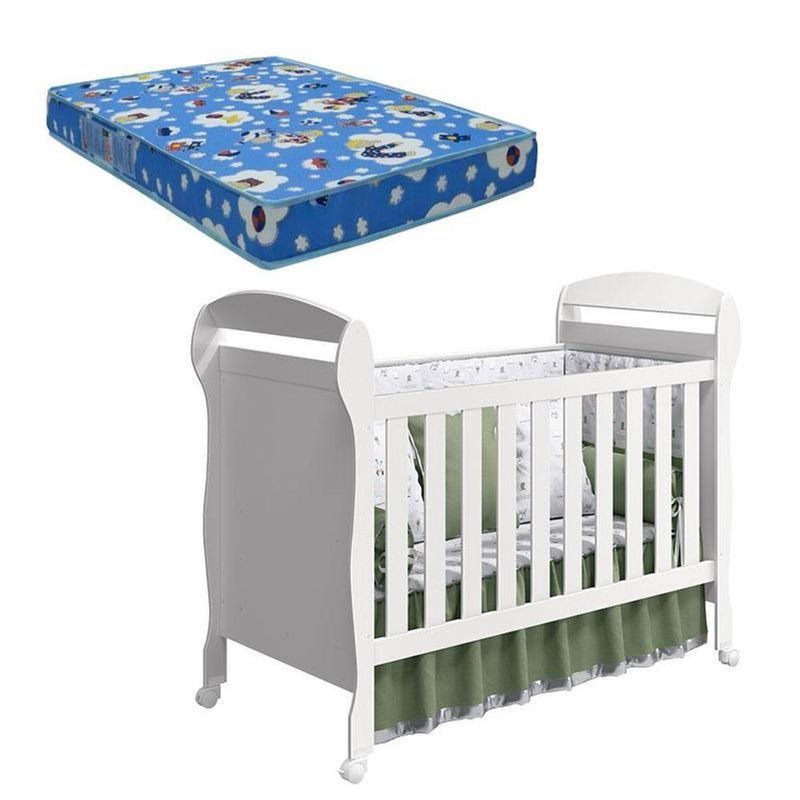 Berço Americano Danny Branco Brilho Com Colchão Ortobom ? RellerBerço Americano Danny Branco Brilho e Colchão Ortobom ? Reller Está na hora de escolher os móveis para a chegada do bebê? Nesse momento de tamanha importância apresentamos mais esse lindo modelo de berço com padrão americano com colchão, trazendo todo o conforto que a criança vai precisar na hora do sono, confira todas as características:-Certificado pelo INMETRO -Transforma-se em sofazinho -Padrão Americano -Cantos arredondados -03 regulagens de altura do estrado -Estrado de madeira reflorestada -Grade Fixa -04 Rodízios, sendo 02 Rodízios com trava -Acompanha suporte para mosquiteiro -Colchão Recomendado:130cm x70cm x 12cm; -Acabamento UVDimensões: Altura: 120 cm Largura: 148 cm Profundidade: 78 cmColchão Berço Americano Phisical 130x70 cm ? OrtobomCaracterísticas Técnicas: - Tecido plano 100% poliéster - Placa de espuma em 100% poliuretano desempenho do INMETRO aprovada - Revestimento inferior em plástico impermeável - Proteção 100% espuma e tecido contra formação e colonização de ácaros, bactéria e fungos trazendo mais e auxiliando na saúde do bebê - Padrão americano - Produto de origem - Lindo design - Carinho e conforto que o seu bebê mereceDimensões: Altura: 10 cm Largura: 70 cm Profundidade: 130 cmOBS: Não realizamos a montagem, porém acompanha manual de instruções. Com gaveteiro: Não | Modelo: Danny | Marca: Reller | Principais Características do Produto 0: | Principais Características do Produto 1: | Principais Características do Produto 2: | Certificação de teste externa: | Exige montagem: | Dimensões do item C x L x A: | Baterias são necessárias?: | Cor: Branco Brilho | Fabricante: Reller | Peso do item: | do modelo: | Componentes incluídos: | Tamanho: | de caixas: | da peça: | Quantidade de itens: | Inclui manual de montagem: Sim