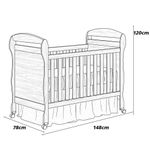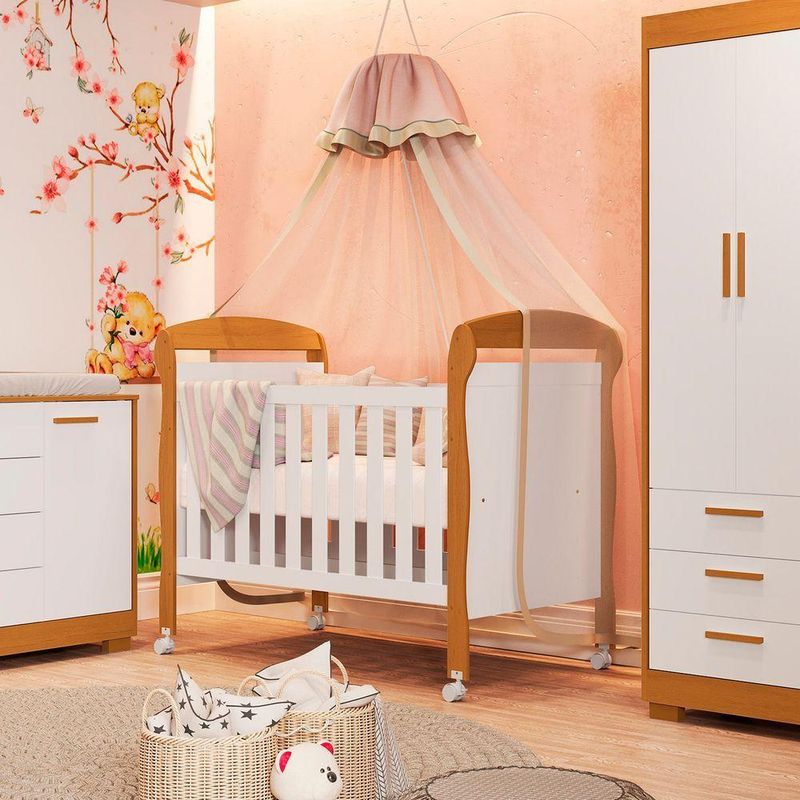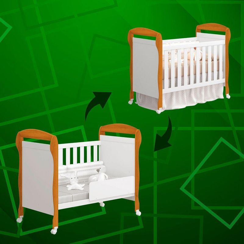 Berço Americano Danny Branco Com SavanaSabe aquele móvel super elegante e romântico, que irá dar um super charme no cantinho so seu baby? O Berço Americano Dany - RELLER é o móvel que falta no cantinho do seu bebê, proporciona conforto e segurança, além de poder se transformar em sofazinho, para que possa ser utilizado após a transição do bebê.Dimensões do Produto Montado:Altura: 120 cmLargura: 148 cmProfundidade: 78 cmObservações:- Berço Certificado pelo INMETRO 006366/2018;- Transforma-se em sofazinho;- Padrão Americano;- Cantos arredondados;- 03 regulagens de altura do estrado;- Grade Fixa;- 04 Rodízios, sendo 02 Rodízios com trava;- Acompanha suporte para mosquiteiro;- Colchão Recomendado:130cm x 70cm x 12cm Densidade: D18 (colchão não incluso);- Pintura ultravioleta com acabamento brilho.