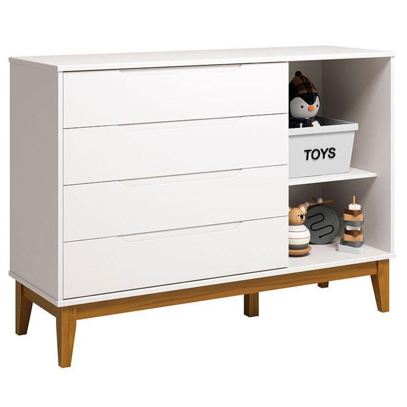 Berço Americano E Cômoda Com Porta Classic Elfe Branco Acetinado Com Pés Madeira - RellerBerço Americano e Cômoda com Porta Classic Elfe Branco Acetinado com Pés Madeira - RellerComeçou a montar o quartinho do seu bebê? Então apresentamos para você este belo conjunto exclusivo. Unindo a delicadeza da cômoda Classic Elfe e a versatilidade do berço New Classic, oferecendo o equilíbrio perfeito entre o estilo clássico e a praticidade moderna. Confira e aproveite!Características Técnicas:Berço Americano New Classic Branco com Pés Madeira – Reller- Desenvolvido 100% em MDF- Cor Branco Acetinado Amadeirado- Sistema de pintura com tinta atóxica que não tem cheiro e não faz mal a saúde do bebê- Padrão americano- Grade fixa para maior segurança- Opção mini cama aumentando a vida útil do móvel- Estrado do colchão em 03 níveis de altura sendo possível ser regulado conforme as fases do crescimento do bebê- Cantos arredondados evitando que o bebê se machuque- Utiliza colchão de 70/130 (Vendido separadamente)- Base é pés em madeira maciça- Certificado INMETRO- Lindo designDimensões:Altura: 97 cmLargura: 135 cmProfundidade: 76 cmCômoda com Porta Classic Elfe Branco Acetinado Amadeirado - Reller- Desenvolvido MDF- 4 gavetas com corrediças telescópicas- 1 Porta- Puxadores embutidos- Pintura atóxica que não faz mal a saúde do bebê- Sistema anti tombamento- Pés Classic- Lindo designDimensões:Altura: 97 cmLargura: 135 cmProfundidade: 45 cmOBS: Não acompanha decorações, utensílios, eletros e acessórios.Informações importantes:*Imagens meramente ilustrativas, cores e estampas podem variar conforme lote.*Não realizamos a montagem ou instalação do produto, porém acompanha manual de instruções.*Toda mercadoria segue segurada contra qualquer sinistro, em caso de anormalidade, recuse.*Conferir a quantidade de volumes.*As caixas ou pacotes possuem identificação com o nome, cidade e quantidades de volumes relativos à compra para conferencia.