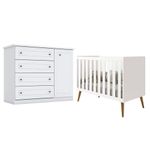 Berço Americano Isis Branco Acetinado - Reller E Cômoda Infantil Americano Branco Hp - HennBerço Americano Isis Branco Acetinado - Reller e Cômoda Infantil Americano Branco HP - HennConjunto Berço Americano Isis Reller Branco Acetinado e Cômoda Infantil Americano Henn Branco HP, ideal para um quarto de bebê prático e aconchegante. O berço oferece conforto e segurança, enquanto a cômoda garante organização e funcionalidade no dia a dia. Design moderno, excelente acabamento e qualidade Reller e Henn para compor um ambiente bonito e funcional.Berço Americano Isis Branco Acetinado - RellerCaracterísticas Técnicas- Material da estrutura em MDF- Acabamento em pintura U.V acetinado- Cantos arredondados- Pés em madeira maciça- Acompanha suporte para mosquiteiro- Possui 3 níveis de altura no estrado- Indicado colchão 70/130 cm ( vendido separadamente)- Certificado pelo Inmetro- Grade fixa- Transforma-se em mini cama- Design modernoDimensõesAltura: 94 cmLargura: 133 cmProfundidade: 77 cmCômoda Infantil Americano Branco HP – HennCaracterísticas Técnicas:- Desenvolvido em MDP/ MDF- Frentes em MDF com usinagem em baixo relevo- Pintura na cor Branco HP- Acabamento em U.V Fosco- 1 Porta- 4 Gavetas com corrediças telescópicas- Prateleiras internas- Puxadores na cor bronze- Lindo designDimensões:Altura: 101 cmLargura: 126 cmProfundidade: 51 cmInformações importantes:- Não acompanha decorações e acessórios- Nossas cargas possuem seguro, portanto, no ato da entrega, confira a quantidade de volumes recebida, e também o estado da embalagem. Se houver qualquer inconsistência, não assine o comprovante de entrega;- O armazenamento do produto no endereço de entrega é de responsabilidade do comprador. Evite apoiar o produto na vertical, bem como evite áreas que deixem o produto exposto a chuva ou umidade excessiva;- Pequenas variações de tonalidade são possíveis, em razão da diferença de resolução da tela onde o anúncio está sendo visualizado. Se notar diferença expressiva, comunicar a empresa antes de efetuar a montagem;- O serviço de entrega contratado contempla a entrega até a primeira área coberta ou portaria, não sendo coberto o ato de subir escadas/elevadores ou adentrar nas residências;- Não nos responsabilizamos pela montagem, desmontagem ou instalação do produto.